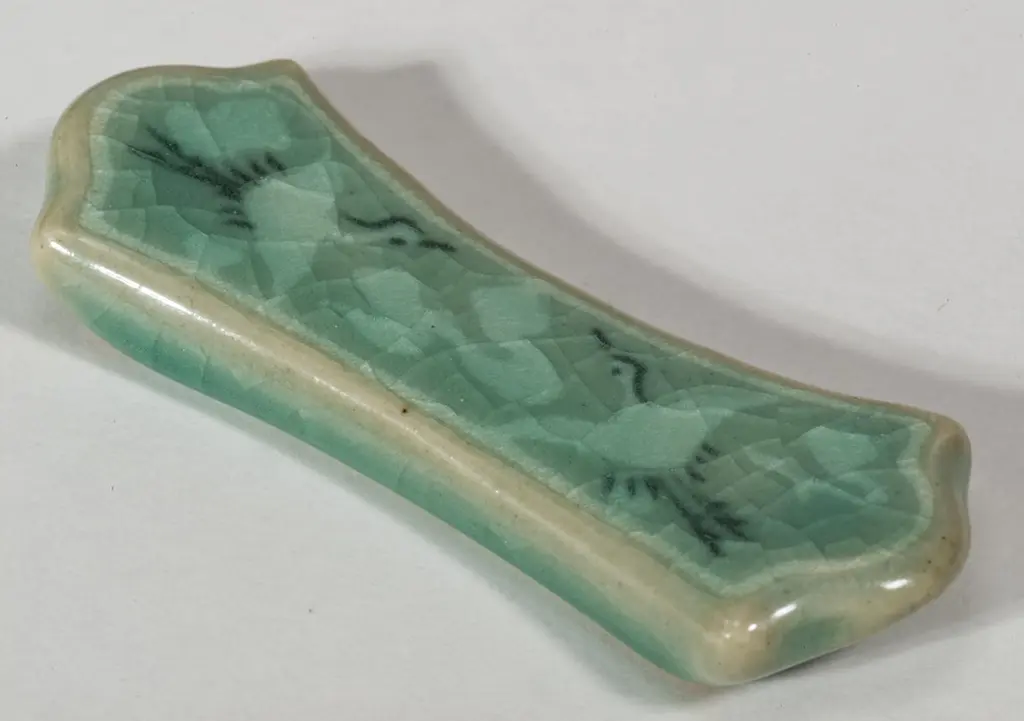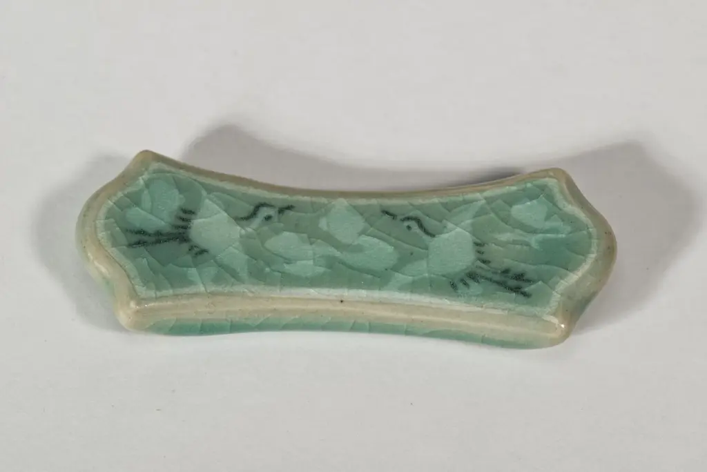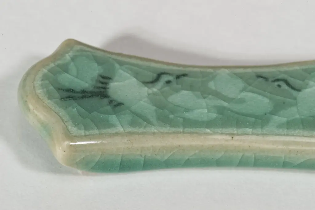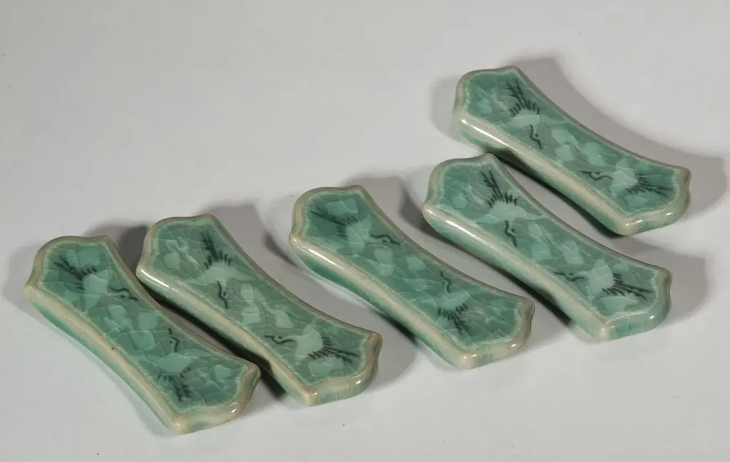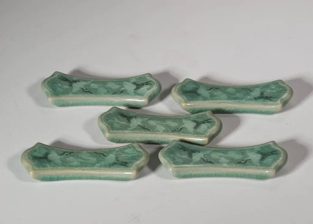 Set Of 5 Korean Celadon Goryeo Knife Chopstick Rests, Flying Cranes & Clouds