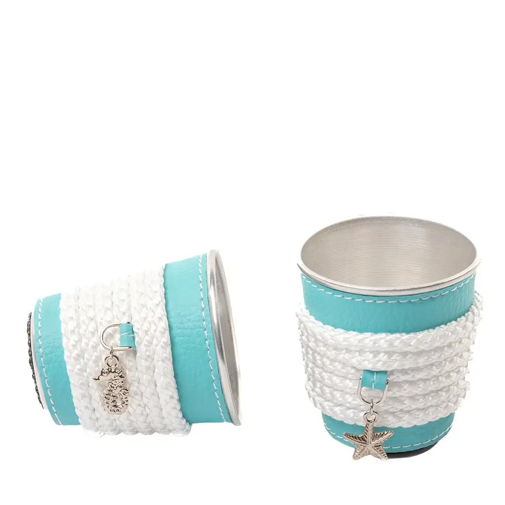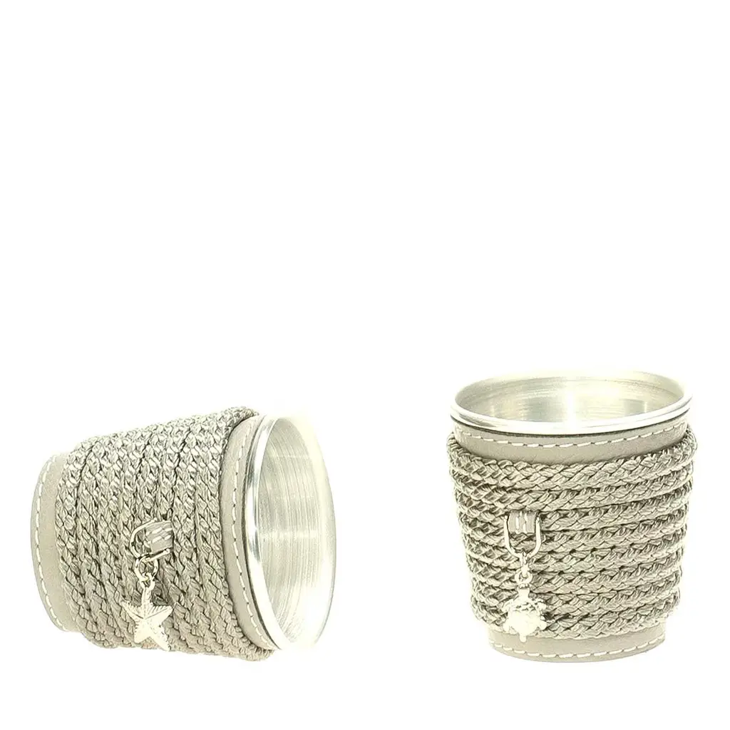 Charming and practical, these cup holders offer solutions to avoid wasting disposable plastic during parties. Made of metal with a white enamel finish, the exterior is decorated with a beige rope that adds an elegant color and textural contrast. The set includes six cup holders, each accented with a different charm in order to easily distinguish its owner. This is the perfect gift for a friend who likes entertaining.