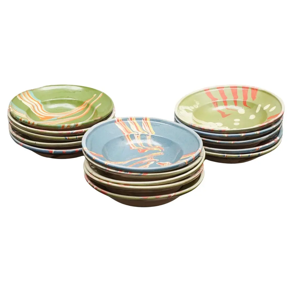 These magnificent Birds of Paradise are an explosion of charm that radiates from the center of the plate and is enhanced by the bold geometry of a palm leaf. Six distinct subjects are presented on a white or colored background with a sophisticated contrasting palette. The version with hand-painted gold details captures and releases light, creating a gleaming dance. It takes an instant to fall in love with them; a single choice is nearly impossible.