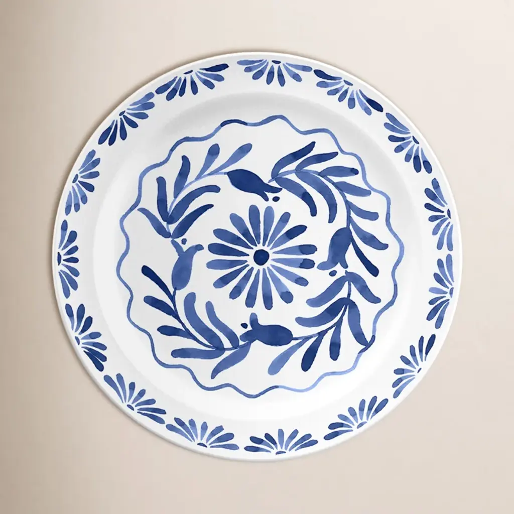 These magnificent Birds of Paradise are an explosion of charm that radiates from the center of the plate and is enhanced by the bold geometry of a palm leaf. Six distinct subjects are presented on a white or colored background with a sophisticated contrasting palette. The version with hand-painted gold details captures and releases light, creating a gleaming dance. It takes an instant to fall in love with them; a single choice is nearly impossible.