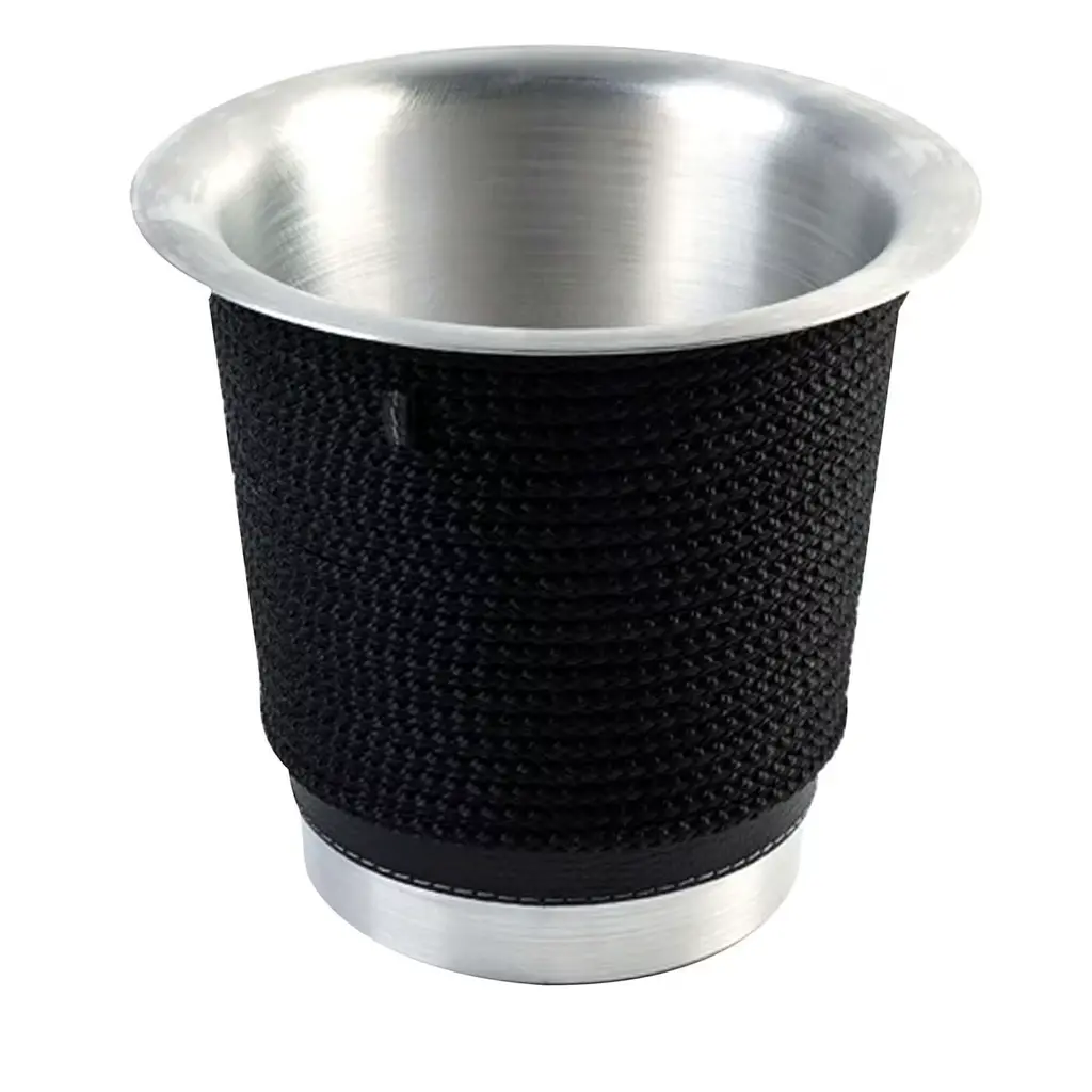 A practical and chic way to personalize a glass during large parties and family gatherings, this set includes six cup holders made of aluminum with a black leather cover and feature a nautical-inspired decorative trim of black rope. Each set comes with six charms to identify the right glass and avoid unnecessary waste of disposable cups. Perfect on any occasion, these cup holders can be used both indoor and outdoors.