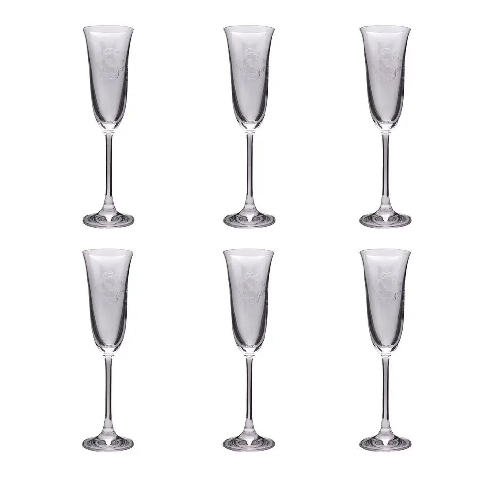Set Of 6 Champagne Flutes With Monogram