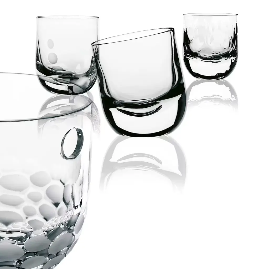 The Harry’s collection is inspired by the pure joy of whisky tasting. Part of the pleasure in such moments is given by the satisfaction and the awareness of holding something precious. The tumbler’s inner roundness reveals the mouth blown technique and allows the ice cube to be set always in the centre. These hand-blown and hand-cut crystal tumblers hold 24 cl.