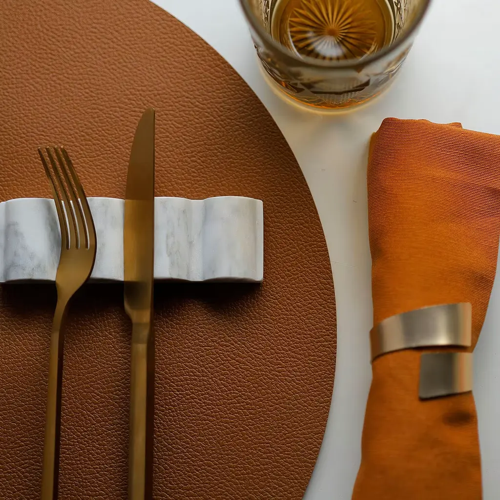 Set Of 6 Parati White Carrara Marble Cutlery Rest