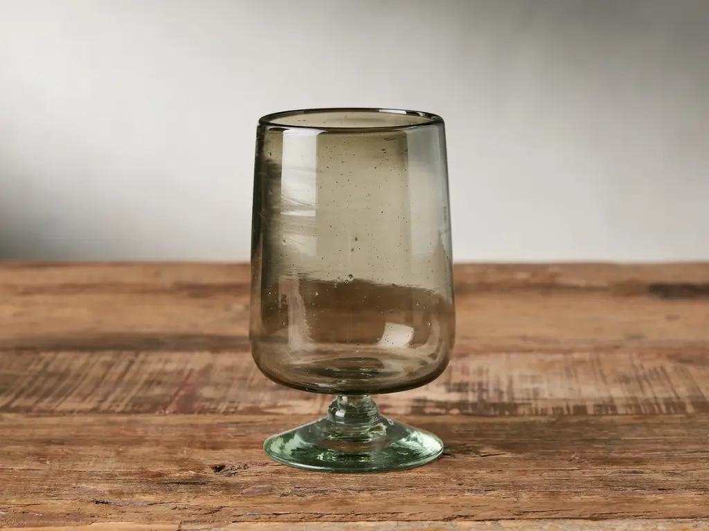 This striking set is made up of six stem glasses, each entirely handmade according to the traditions of Venetian glass-making. The round base and low stem are tinted with an elegant blue color that is ideal for a dinner on the patio of a summer home or a spring party. The color fades toward the cup, creating elegant nuances that complement the smooth surface of the piece. Part of the Puro collection, this set can be combined with other items in the same collection.