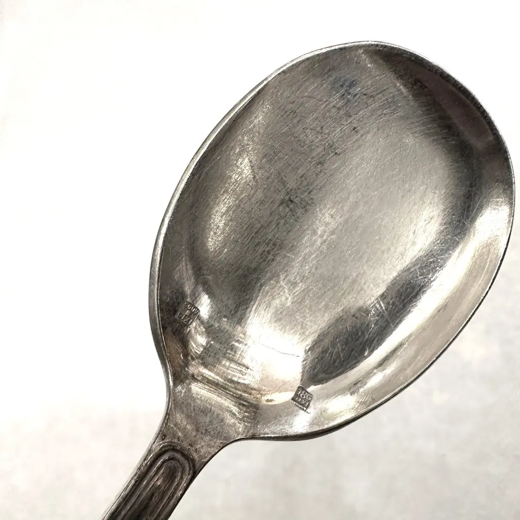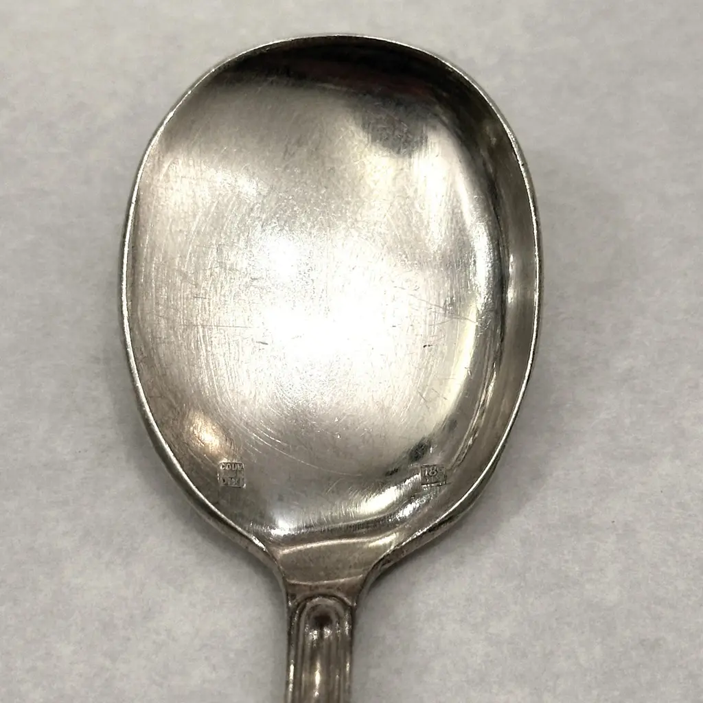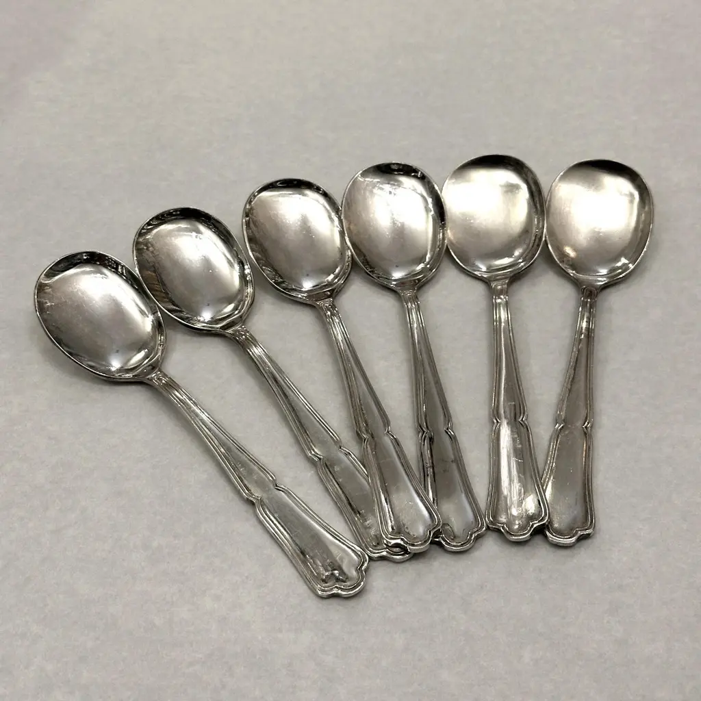 This elegant set of 6 ice cream spoons, crafted in silver-plated metal by the renowned Dixi workshop, features a beautifully scalloped edge, adding a touch of refinement to your dessert table. Perfect for enjoying your favorite ice creams and sorbets, these spoons combine functionality with timeless design.Stamped with the Dixi hallmark, they are in good condition, showing some traces of use and light micro-scratches, which add character without compromising their charm. A great addition to any collection or a sophisticated complement to your table setting.