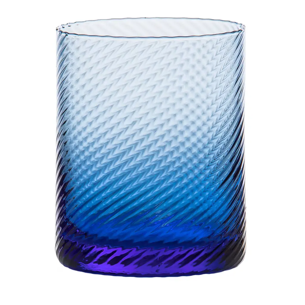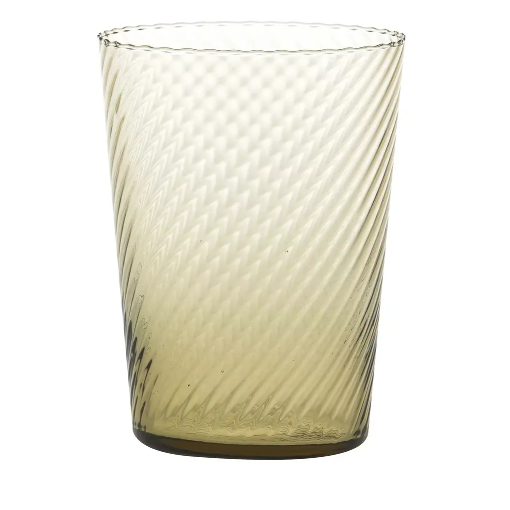 This elegant set, part of the Torsè Collection, comprises six low glasses ideal for serving any type of drink for lunch, dinner, or cocktails. Alone or combined with tall glasses, this eye-catching and refined set will add a hint of amber color to an all-white table or complement a colorful decor. Each piece is crafted by hand and features the distinctive twisted texture that is characteristic of all the items in this series, adding a sense of movement and sophistication to any table.