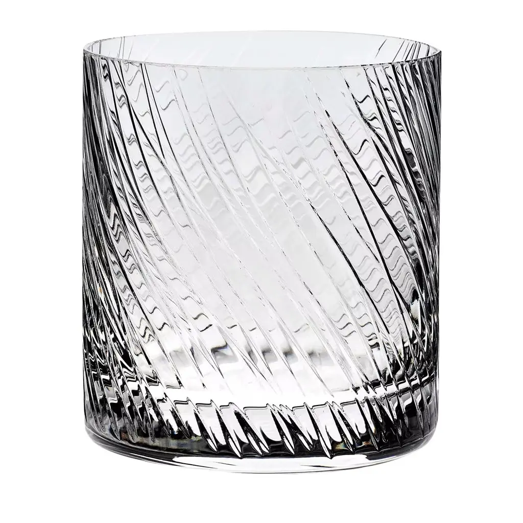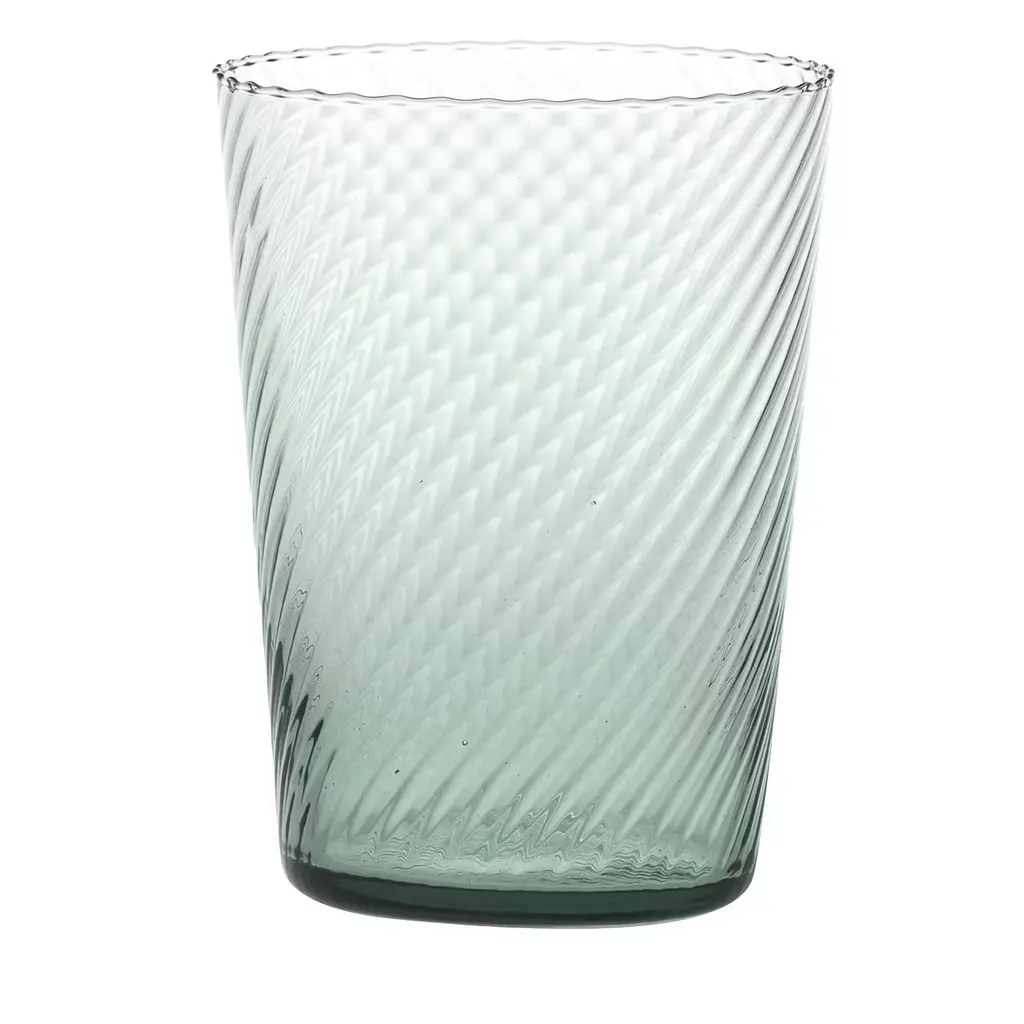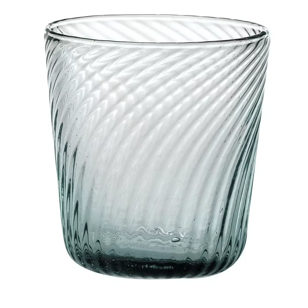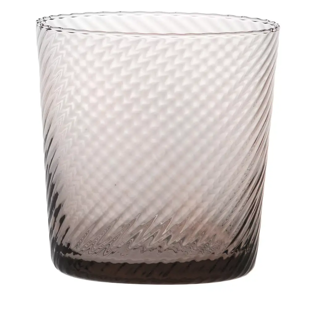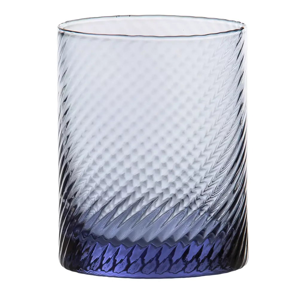 Timeless and sophisticated, this set is a precious addition in both a classic and contemporary home, where it will add elegance and a unique decorative touch to a table when serving wine, water, or other drinks. Each handcrafted glass features a modern gunmetal-grey hue that strikingly contrasts with the delicate "twisted" pattern of its surface, in which a multitude of parallel waves creates a stunning sense of movement.