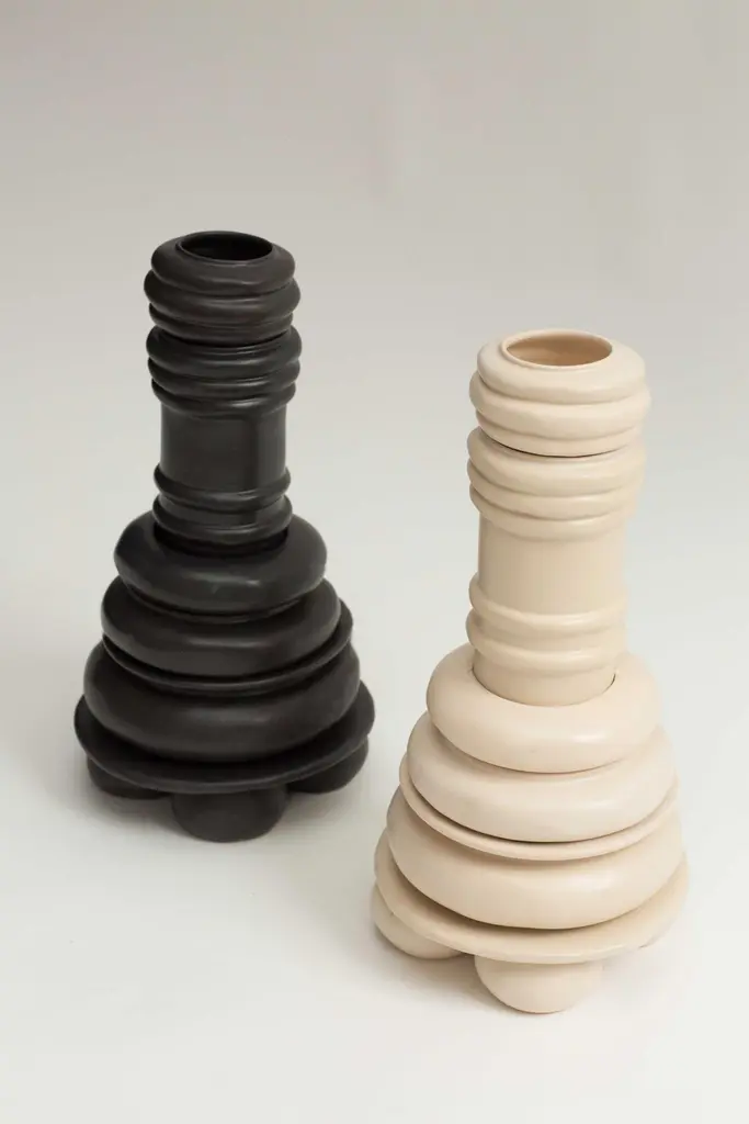 Set Of 7 ROZMOVA Dishes by ZEMNADesigned by Tetiana Krasutska.Dimensions: H 50. Materials: Clay.ROZMOVA – is a set of dishes that turns to a piece of decor once you putall the parts together. We work together with a skilled (excellent) ceramist, a man who is deeply in love with the whole process and teaches us to work with clay.It’s a complicated process that takes about 1 year. We use special forms to make some elements, others are made manually every time. After that we polish all the details by hand and roast at high temperature, that is followed by a matt glazing.Set of 7 elements:2 plateus3 deep plates2 vases.Dimensions may vary. Please contact us.We tell stories through shapes, textures, and symbols. And invite you to dialogue with yourself, nature, and the moment.