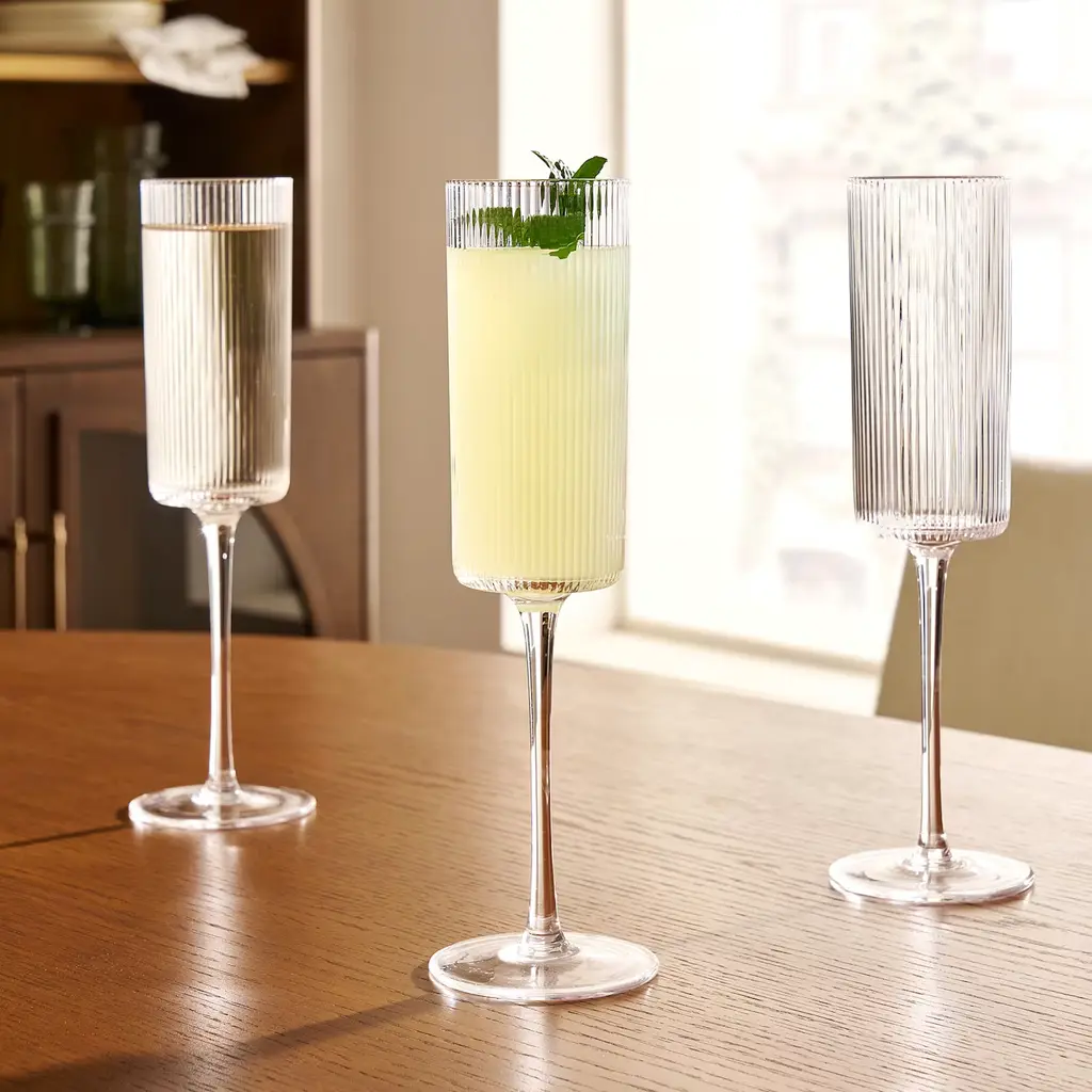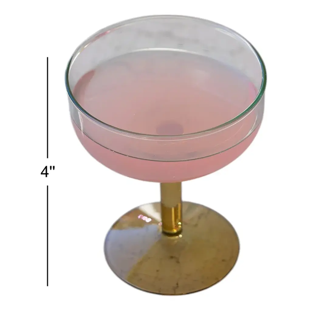 Set Of Four Coupe Glasses With Colored Stems - One Each