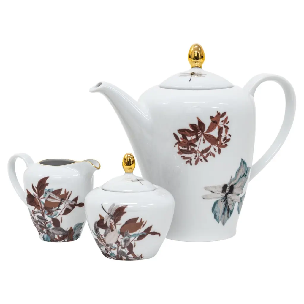 Set Of Murrine Grey Small Teapot With Two Tea Cups And Saucers