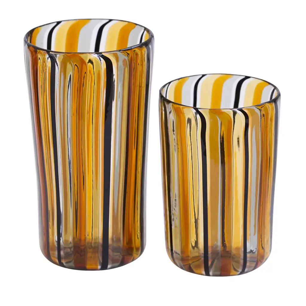 Set of 6 Murano wine glasses made with the "a Canna" technique, where canes of colored glass are melted into a clear glass base. This beautiful set includes 6 glasses entirely handcrafted on the Venetian island of Murano by the master glass blowers of La Fornasotta. The filigree glasses are usually considered the most precious among all Murano glasses.