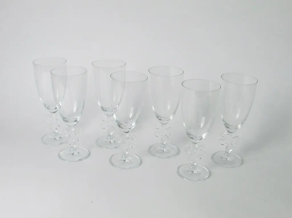 Set Of Ten Fun And Fancy Marc Aurel Water Glasses With Jigsaw Stem