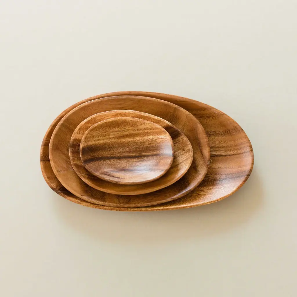 Set Of Two, Acacia Seven Inch Oval Wood Dish