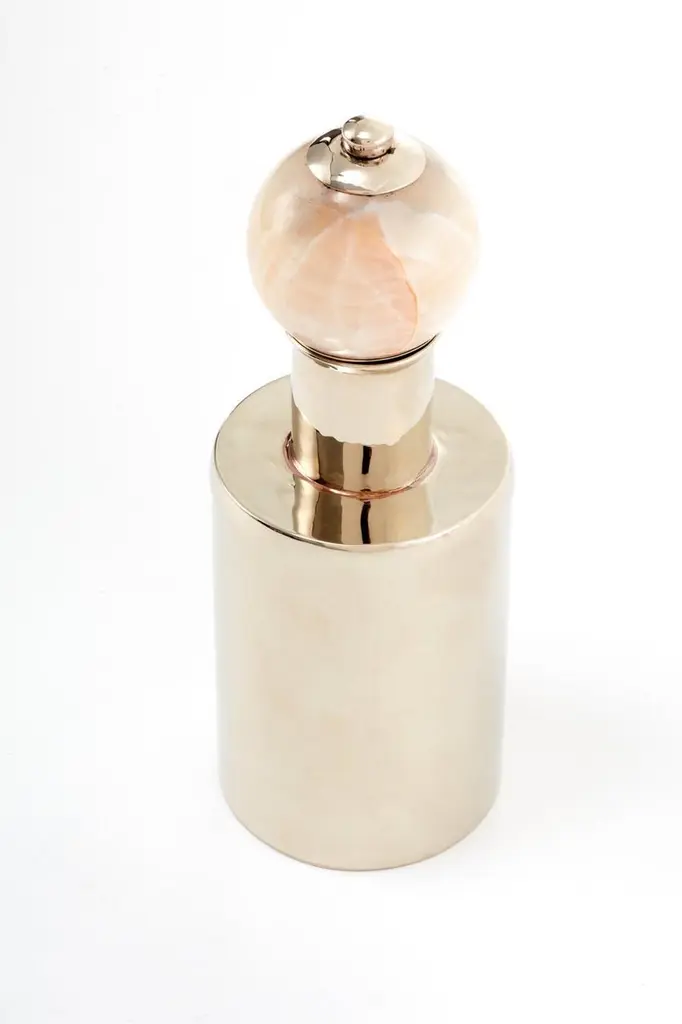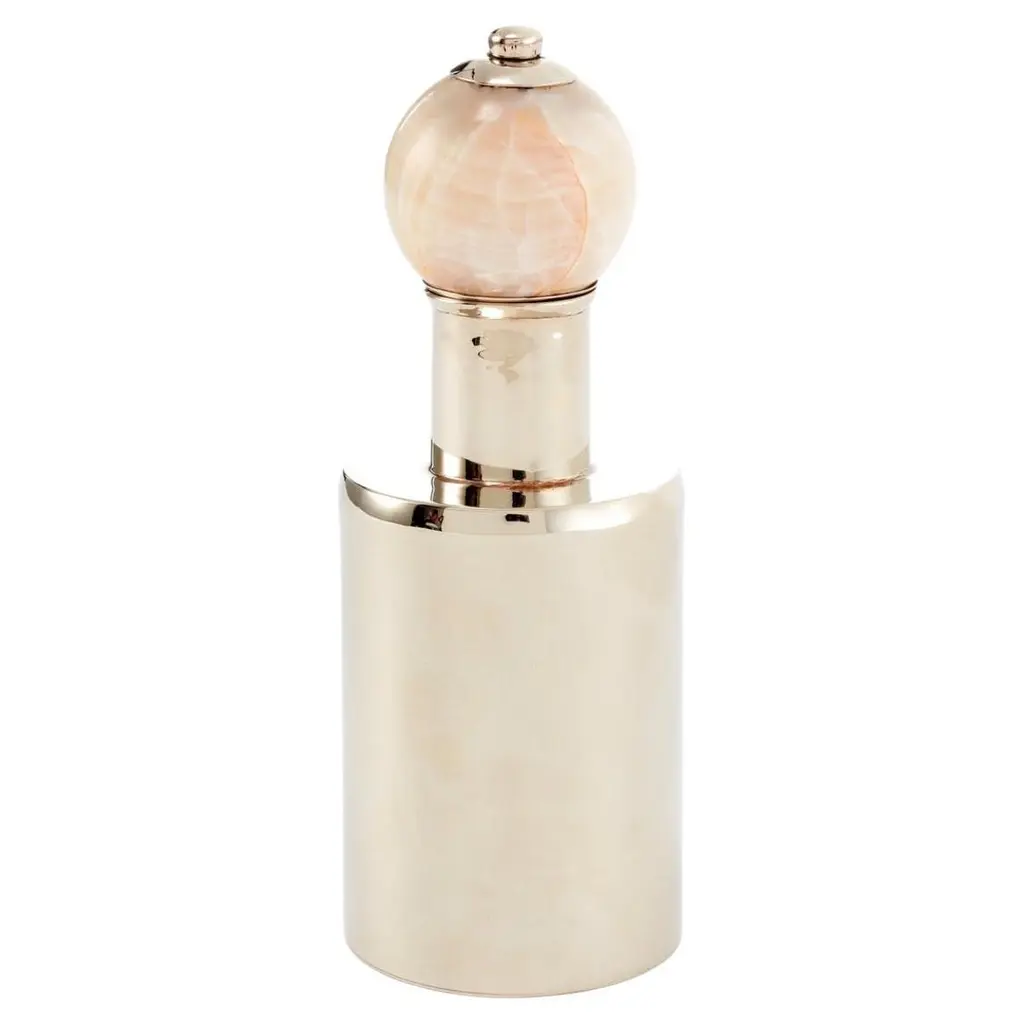 These unique Tilcara bottles are made with silver alpaca, giving them a sophisticated and elegant look. The lids are adorned with beautiful onyx stones, adding a touch of luxury to their design.7.8" x 3"9" x 3.2"