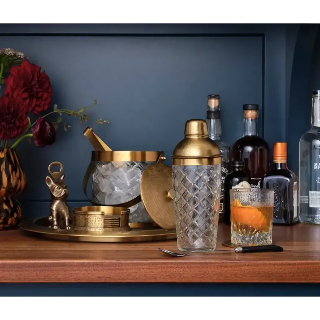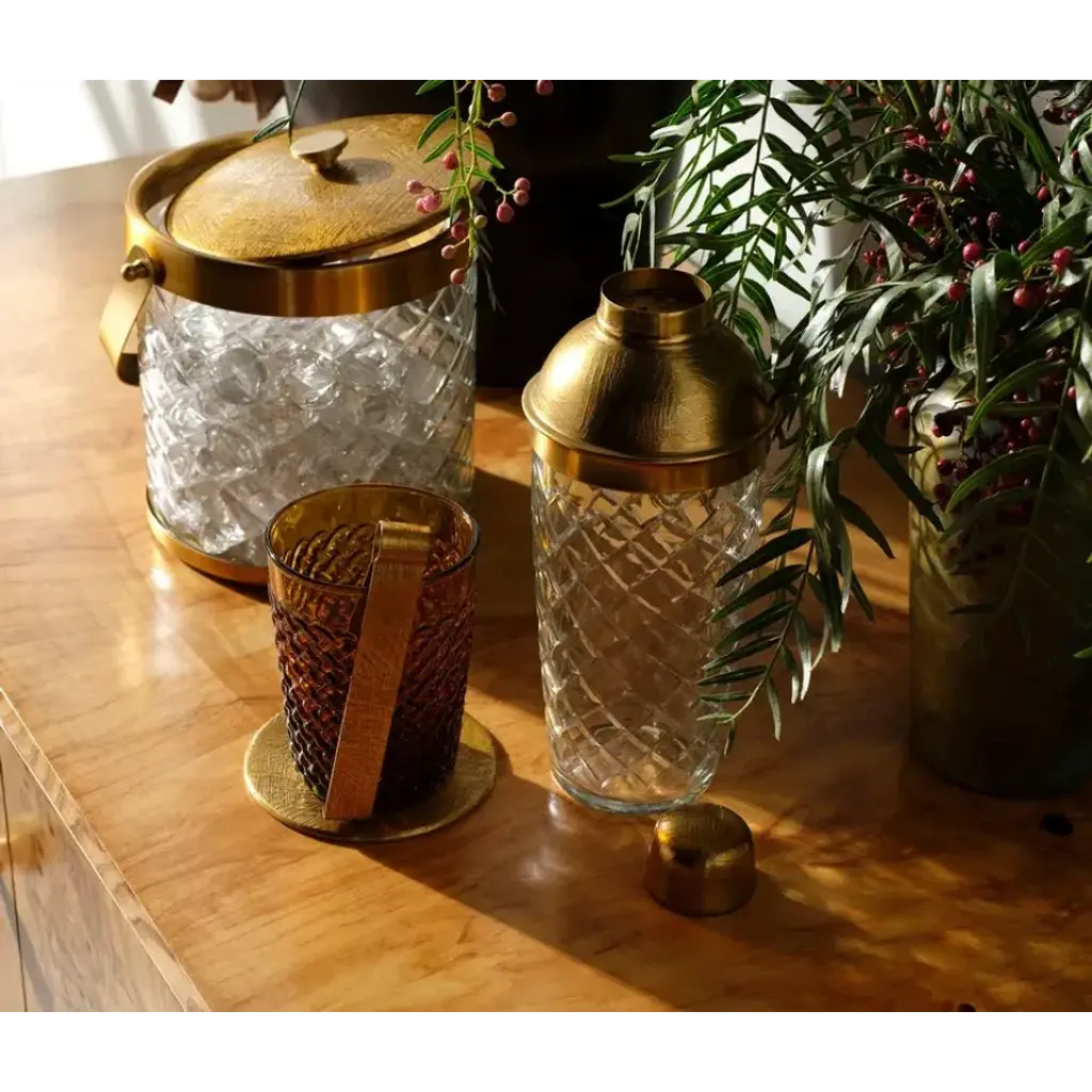 Sevasti Antique Brass, Diamond Etched, Ice Bucket W/ Tongs, Metal/ Glass