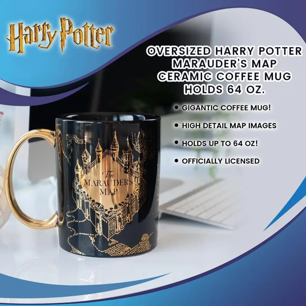 I SOLEMNLY SWEAR THAT I LOVE THIS COFFEE MUG When it comes to finding the right piece of Harry Potter decoration or gifts, nothing quite compares to the magnificence of this large coffee mug. At 64-Ounces, this mythical beast of a cup is perfect for using a candy bowl for your next Harry Potter movie marathon. You can use this cup to store other items as well such as your wand collections, every flavor of your Bertie Bott’s beans, and so much more! This cup is also fantastic for quenching your thirst all day long. OFFICIALLY LICENSED AND MISCHIEF READY Featuring a gold foil design of the marauder’s map, any die-hard Harry Potter fan would love this cup. We’ve gone through the rigors of ensuring that this mug is Hogwarts headmaster approved and officially licensed. Now you can enjoy this cup in your collections and more! Giving it as a gift? Not just any Harry Potter Mug will do, make sure that you grab this officially licensed cup that your friends and family members are sure to love!