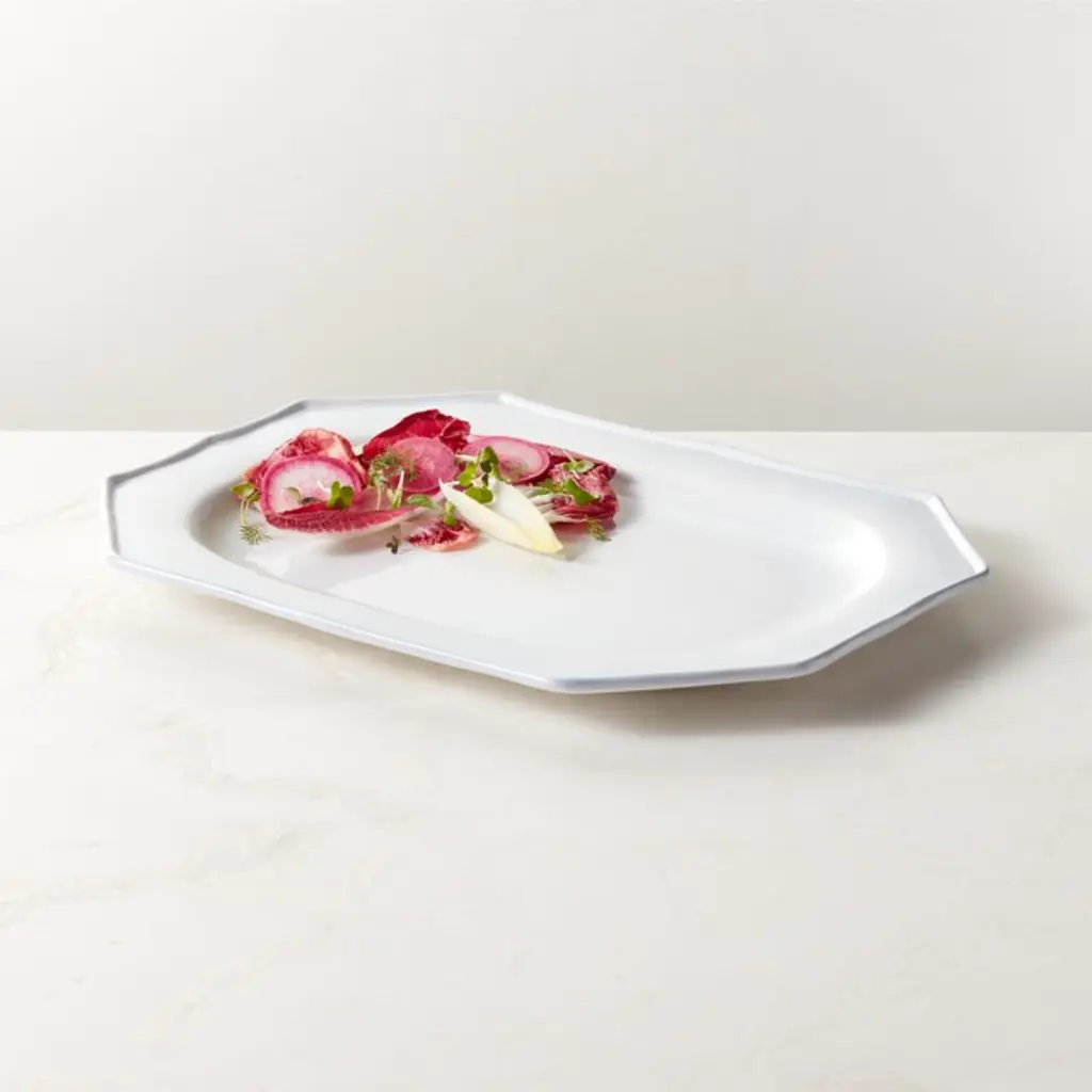 Turgla Home Shade organic rectangular coupe platter can be used for generous servings of your dinner party or as a platter to share. The organic coupe design of the Shade Oval plate allows you to design your food presentations in more creative ways. Shade porcelain is a durable high fired porcelain with high quality. Shade line carries organic shapes with Therapyl textures.