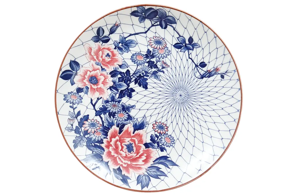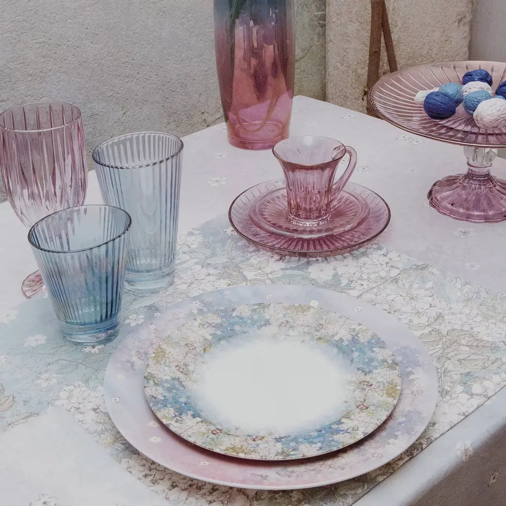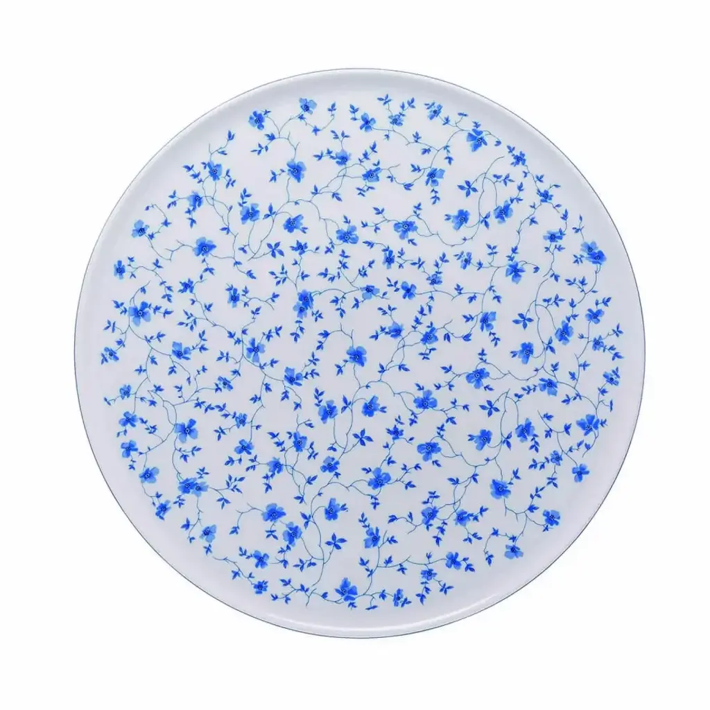 Exuding an enchanting allure obtained through the striking color gradients, this superb set of 2 plates is a singular ceramic piece. A romantic pattern of blossoming flowers graces the plate's center and part of the rim, chromatically matching the vibrant shades ranging from purple to blue that enliven the rest of the circular silhouette.