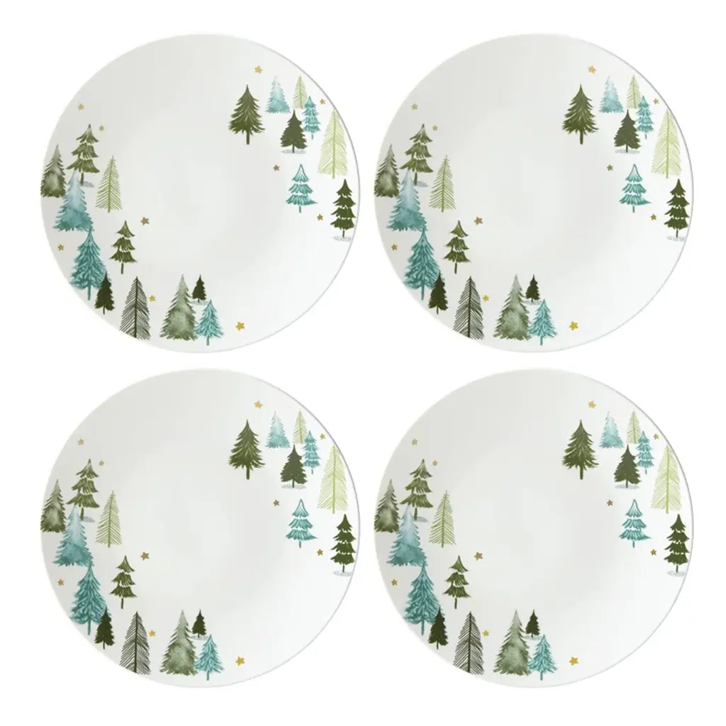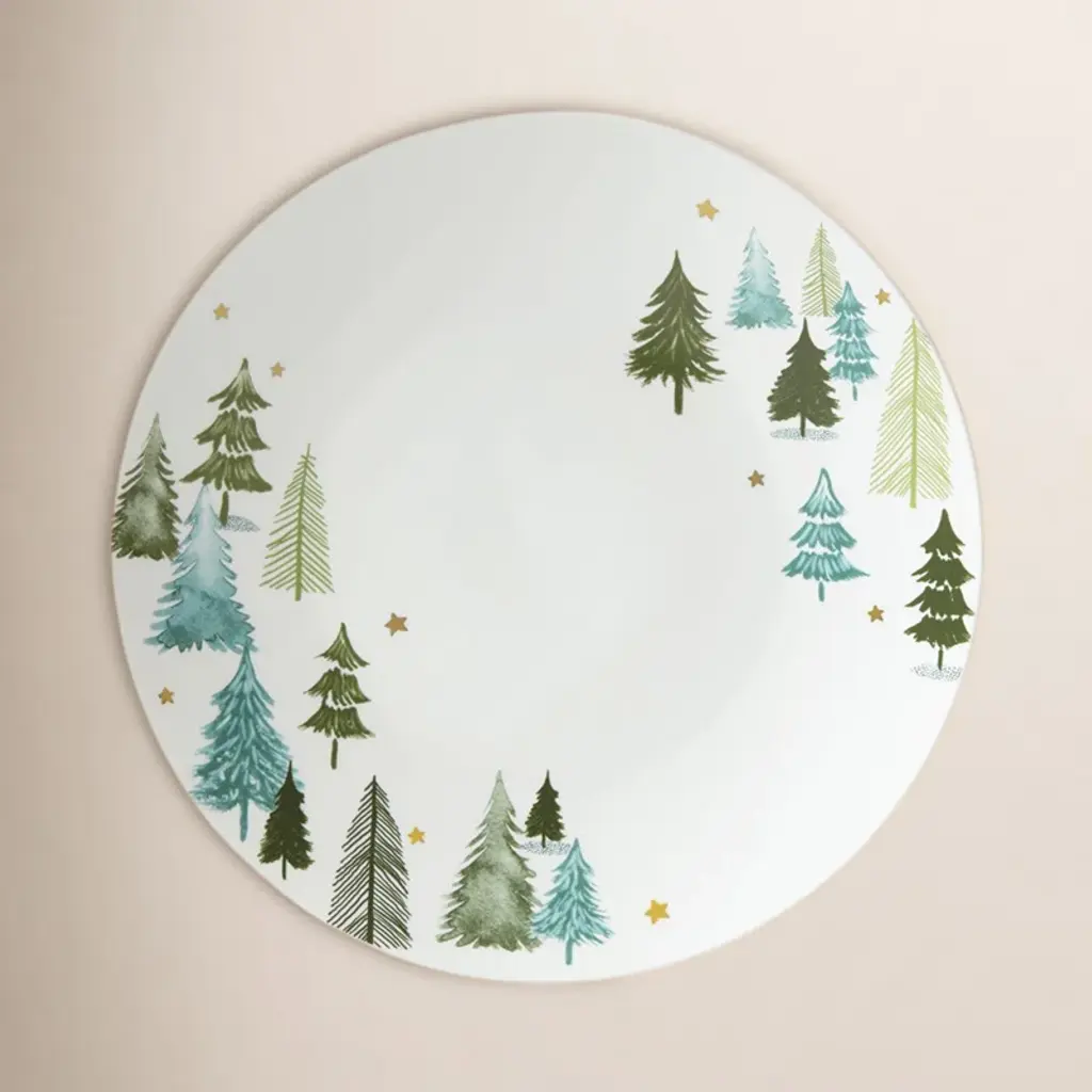 Celebrate the season in style with a winter-themed platter that’s perfect for all your holiday gatherings. Featuring festive designs and vibrant colors, this platter brings a touch of cheer to any table setting. Whether serving appetizers, desserts, or main courses, it combines charm and functionality to elevate your holiday dining experience. Durable and beautifully crafted, it’s a delightful addition to your seasonal tableware. This includes 4 matching platters with a matching Evergreen Tree design