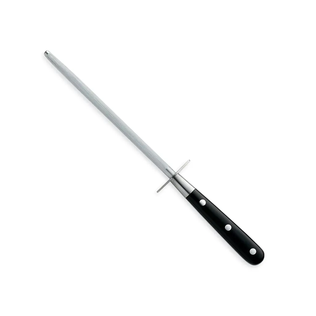 This Sharpening Knife is a handy kitchen accessory by the Tuscan, family-owned business Coltellerie Berti. Intended for sharpening other knives, the design features a full tang steel blade and a riveted lucite handle. Handmade from beginning until end, the knife is crafted and signed by one artisan. The heirloom-quality item was designed and made in Italy.