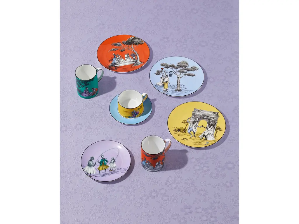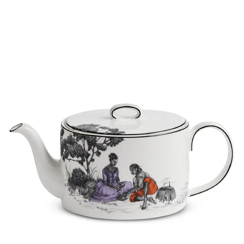 Display a beautiful tablescape with the whimsy scenes depicted on this collection created in collaboration between Sheila Bridges and Wedgwood. This collection features interior designer Sheila Bridges' much-admired design, Harlem Toile de Jouy. The design draws inspiration from traditional French toile, reimagined to celebrate a complex history and rich culture, while exploring stereotypes and allowing expression of politics and art. Like Sheila, Josiah Wedgwood voiced his political stance through creativity and craft. His Slave Medallion, "Am I Not a Man and a Brother", was sent to Benjamin Franklin to raise awareness of the anti-slavery movement. Sheila was first introduced to Wedgwood by her mother, who gave her a black and white medallion which she now wears as a necklace.This collaboration sees Sheila's popular design meet Wedgwood's fine bone china, for a collection that celebrates art as a tool for storytelling and change.