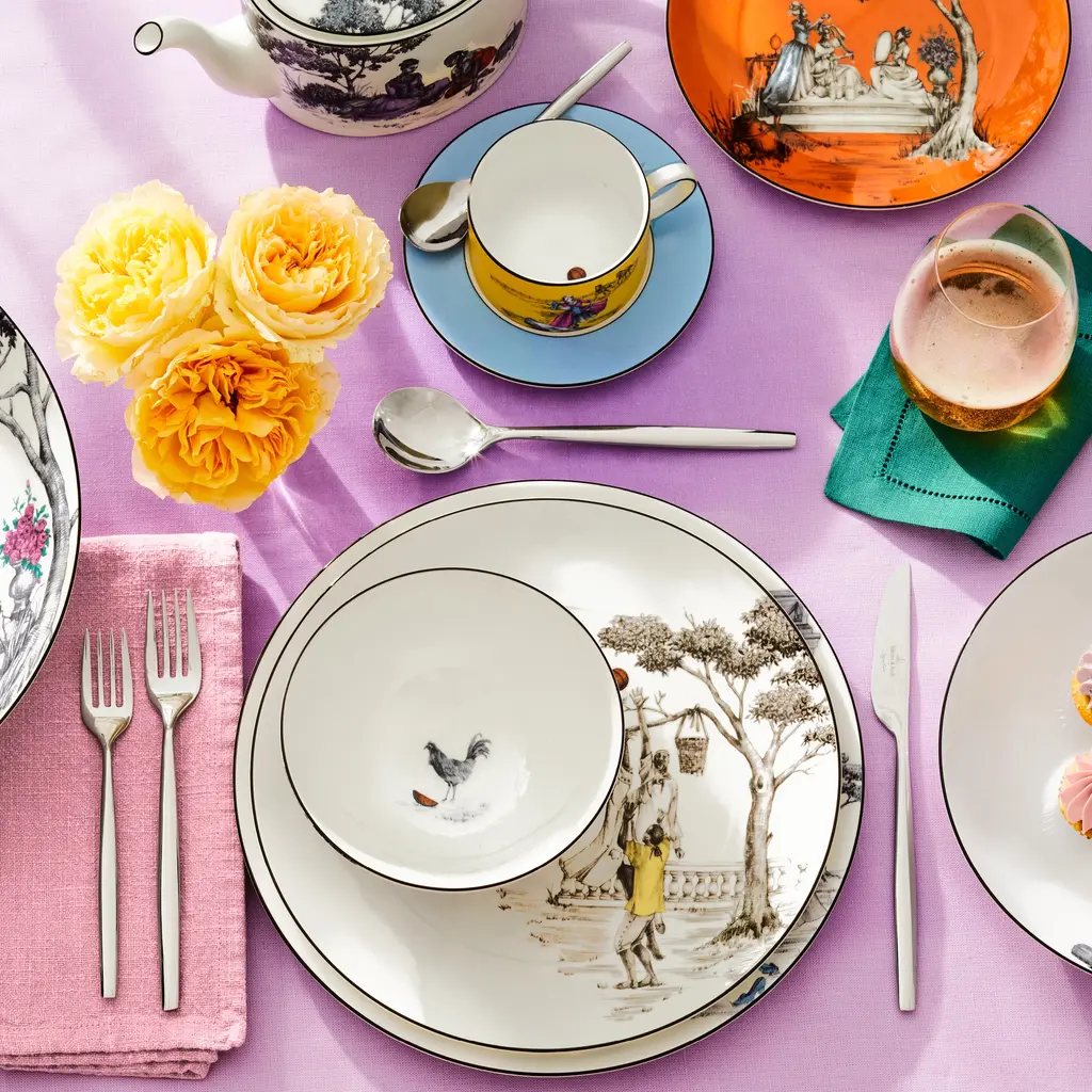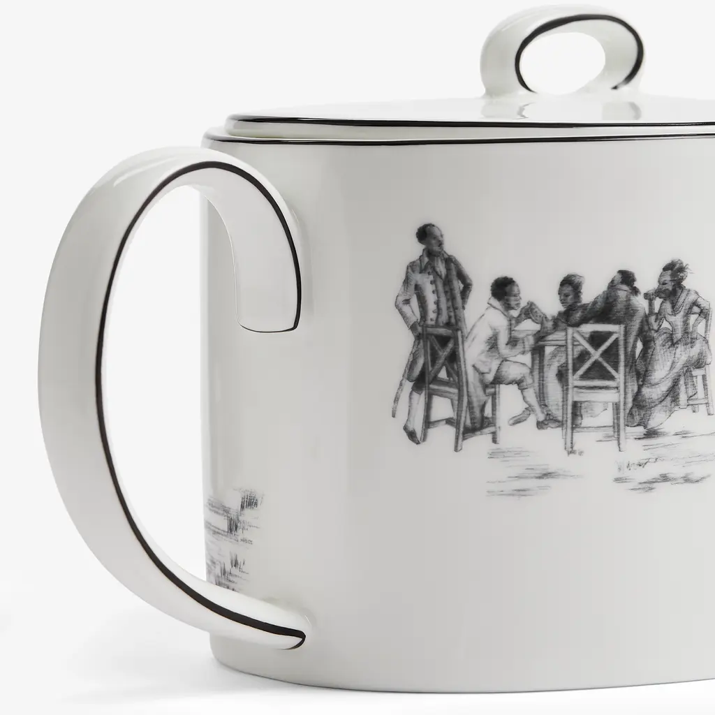 Display a beautiful tablescape with the whimsy scenes depicted on this collection created in collaboration between Sheila Bridges and Wedgwood. This collection features interior designer Sheila Bridges' much-admired design, Harlem Toile de Jouy. The design draws inspiration from traditional French toile, reimagined to celebrate a complex history and rich culture, while exploring stereotypes and allowing expression of politics and art. Like Sheila, Josiah Wedgwood voiced his political stance through creativity and craft. His Slave Medallion, "Am I Not a Man and a Brother", was sent to Benjamin Franklin to raise awareness of the anti-slavery movement. Sheila was first introduced to Wedgwood by her mother, who gave her a black and white medallion which she now wears as a necklace.This collaboration sees Sheila's popular design meet Wedgwood's fine bone china, for a collection that celebrates art as a tool for storytelling and change.