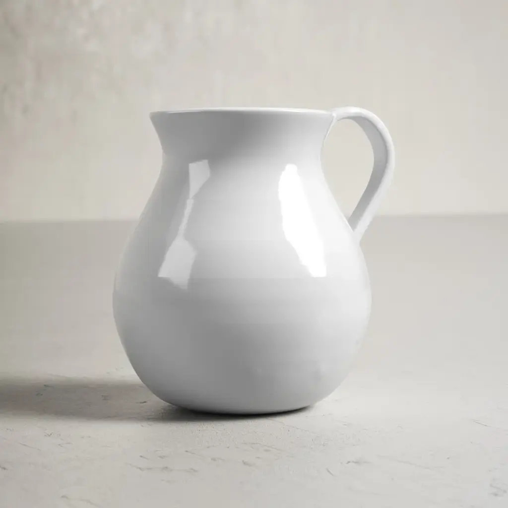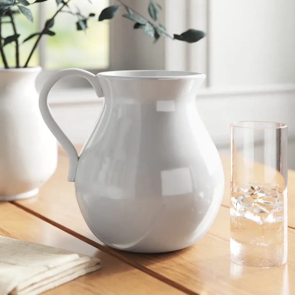 With its curvy lines and classic shape, this ceramic pitcher is at home in any setting.