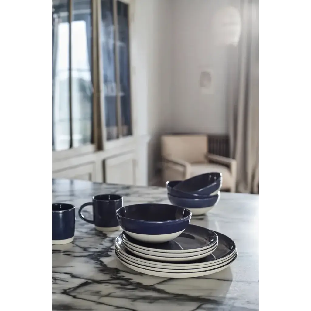 Shell Bisque Indigo Round Serving Bowl