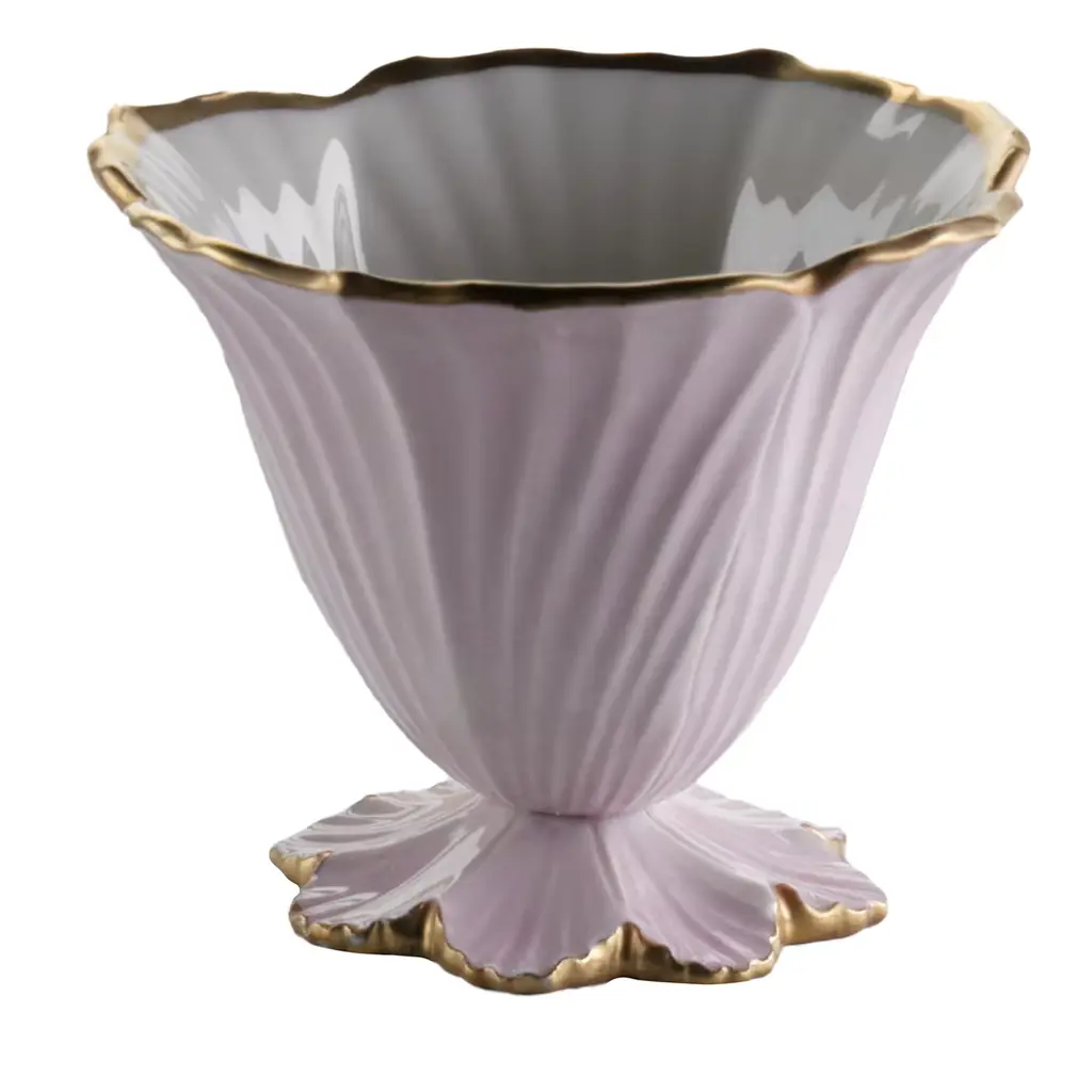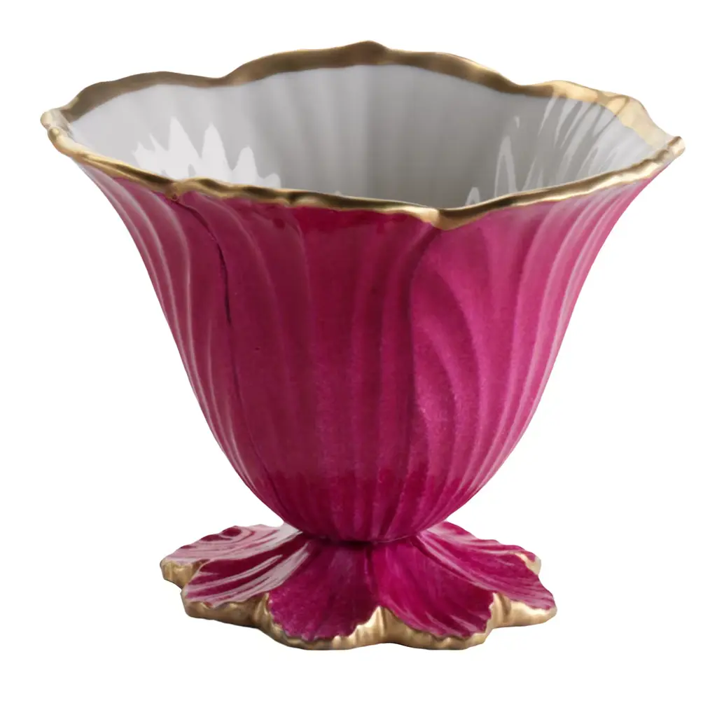The reference to nature and its graceful size makes this extremely versatile object suitable for functional choreography at your table or as a welcome gift for special occasions that will give style and elegance to any room in the house. Each color, chosen with care, is expertly hand-painted by our master craftsmen and edged in 24 carat gold.