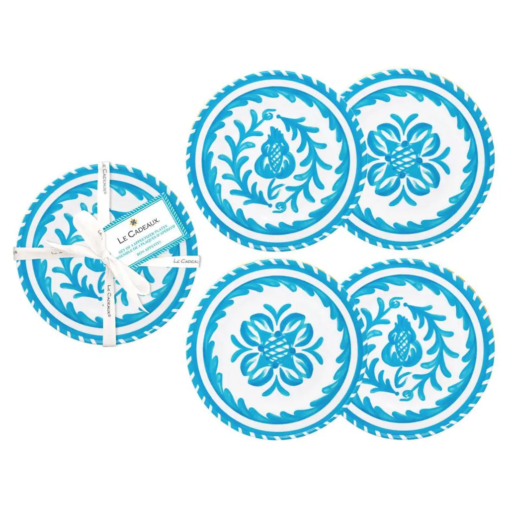 Sicily Global Teal Melamine Floral Appetizer Plate - Set Of 4