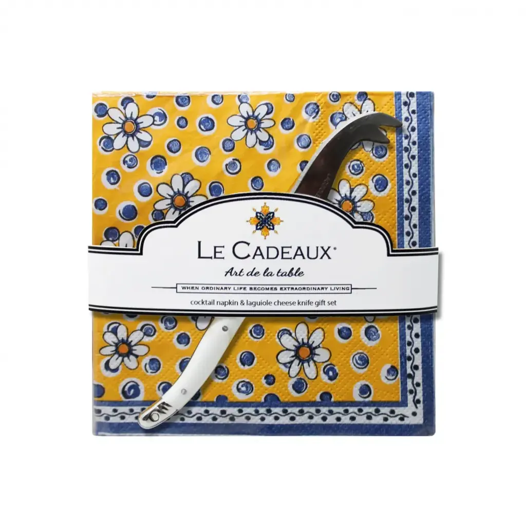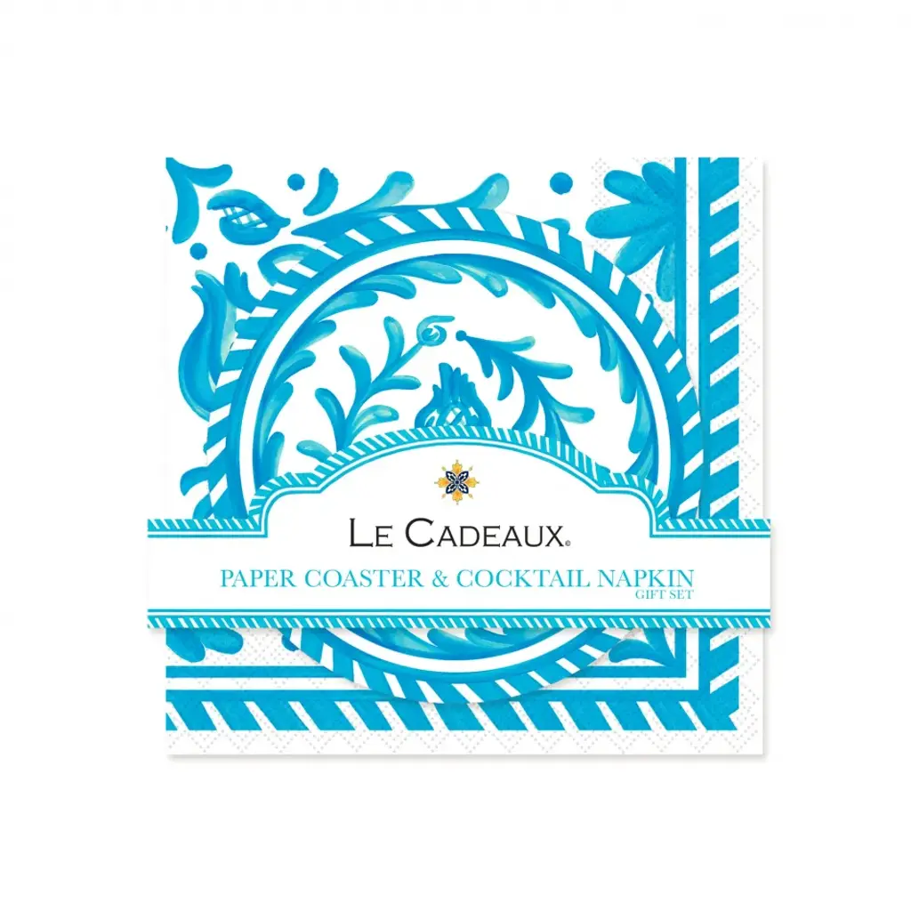 Sicily Teal Cocktail Napkins With Cheese Knife Set