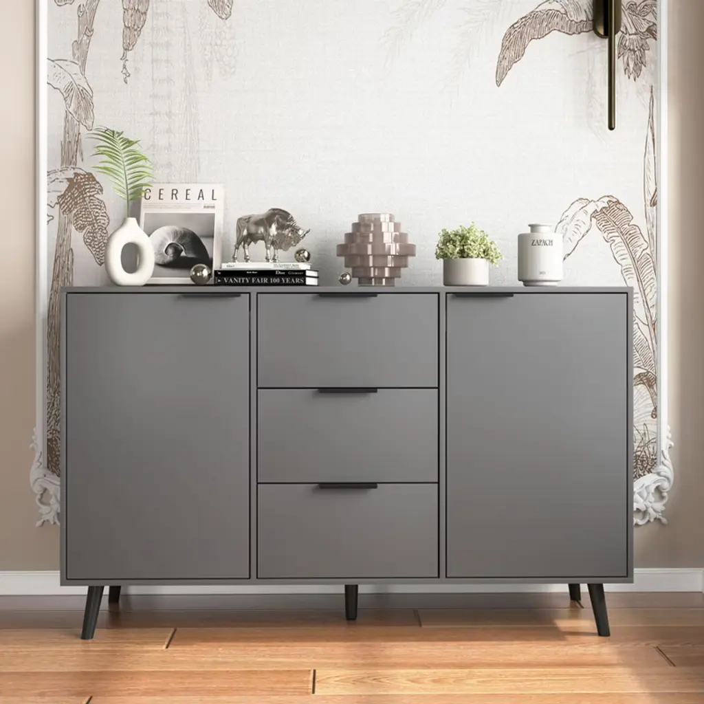 Sideboard Buffet Cabinet With Storage, Wood Coffee Bar Cabinet, 47.2" Kitchen Cabinet With 3 Drawers & 2 Doors, Kitchen Buffet Cabinet Cupboard Gray