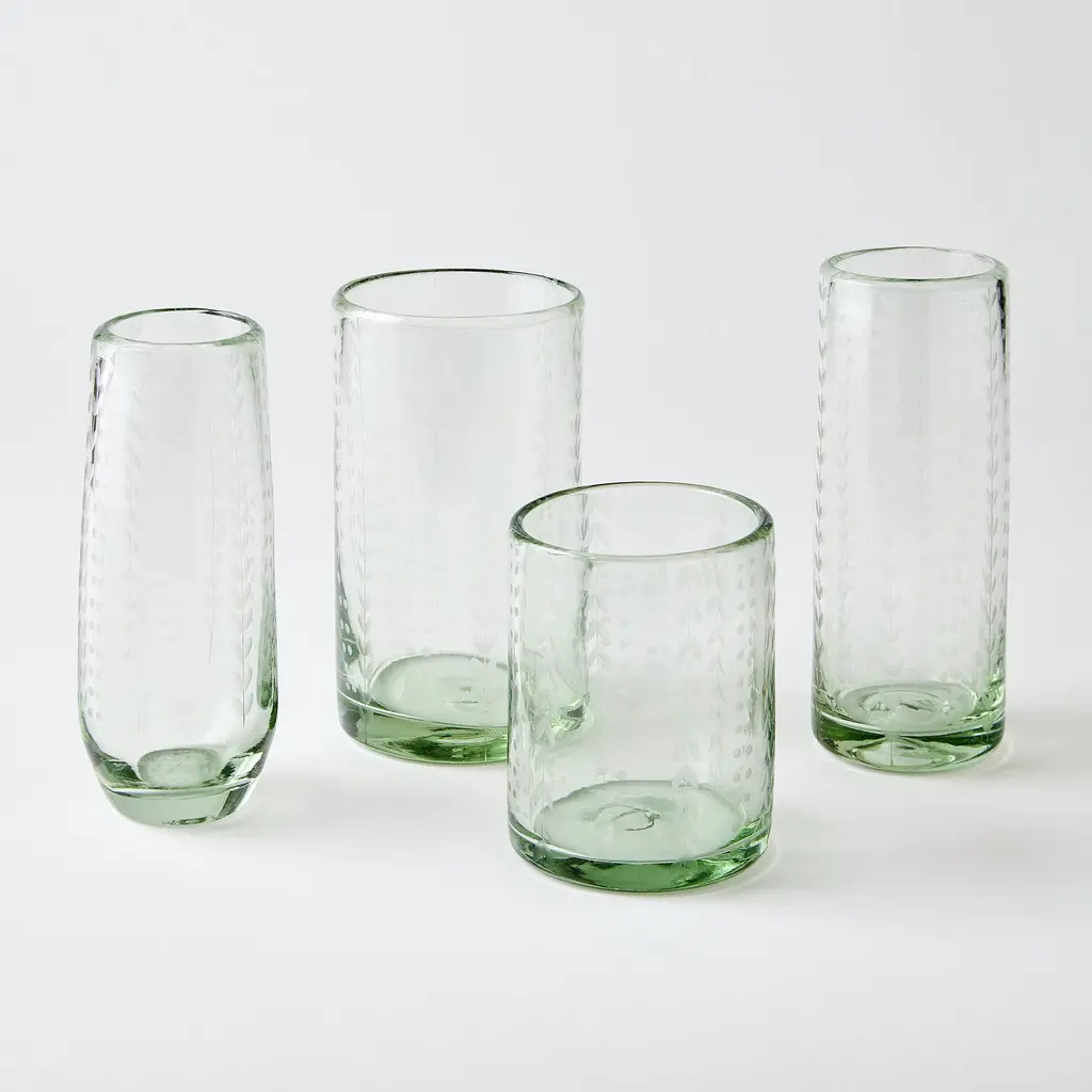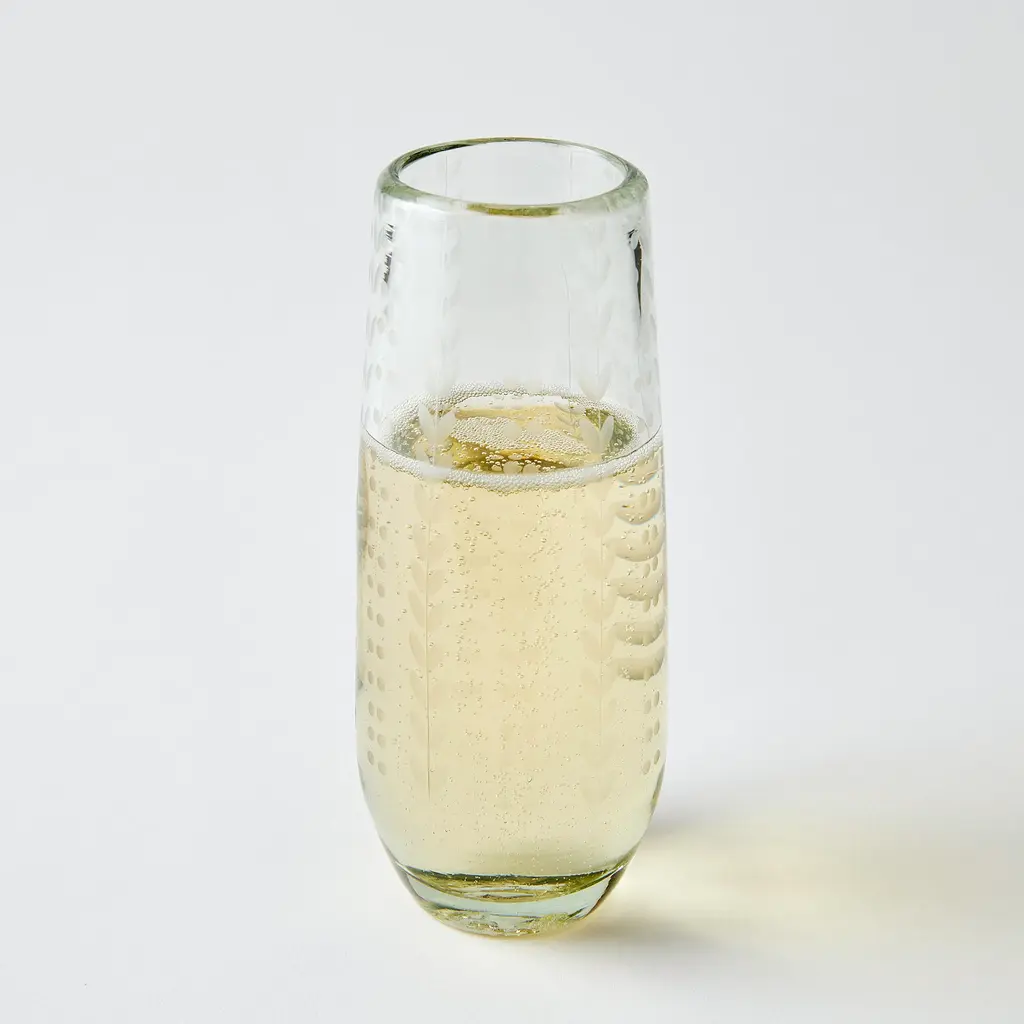 Celebrate every sip with the Signature Seven Stemless Champagne Glass, hand-blown in Central Mexico from recycled glass. Its stemless silhouette offers a modern touch with a comfortable grip, perfect for sparkling toasts, casual brunches, or an evening glass of bubbles. Durable yet refined, this piece blends sustainability, artistry, and timeless style—made to be cherished one glass at a time.