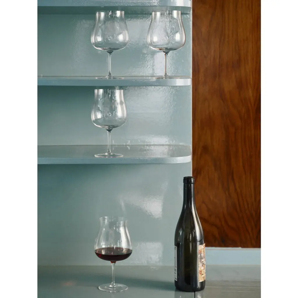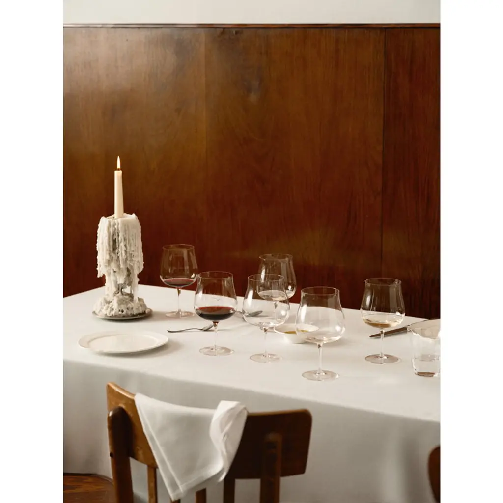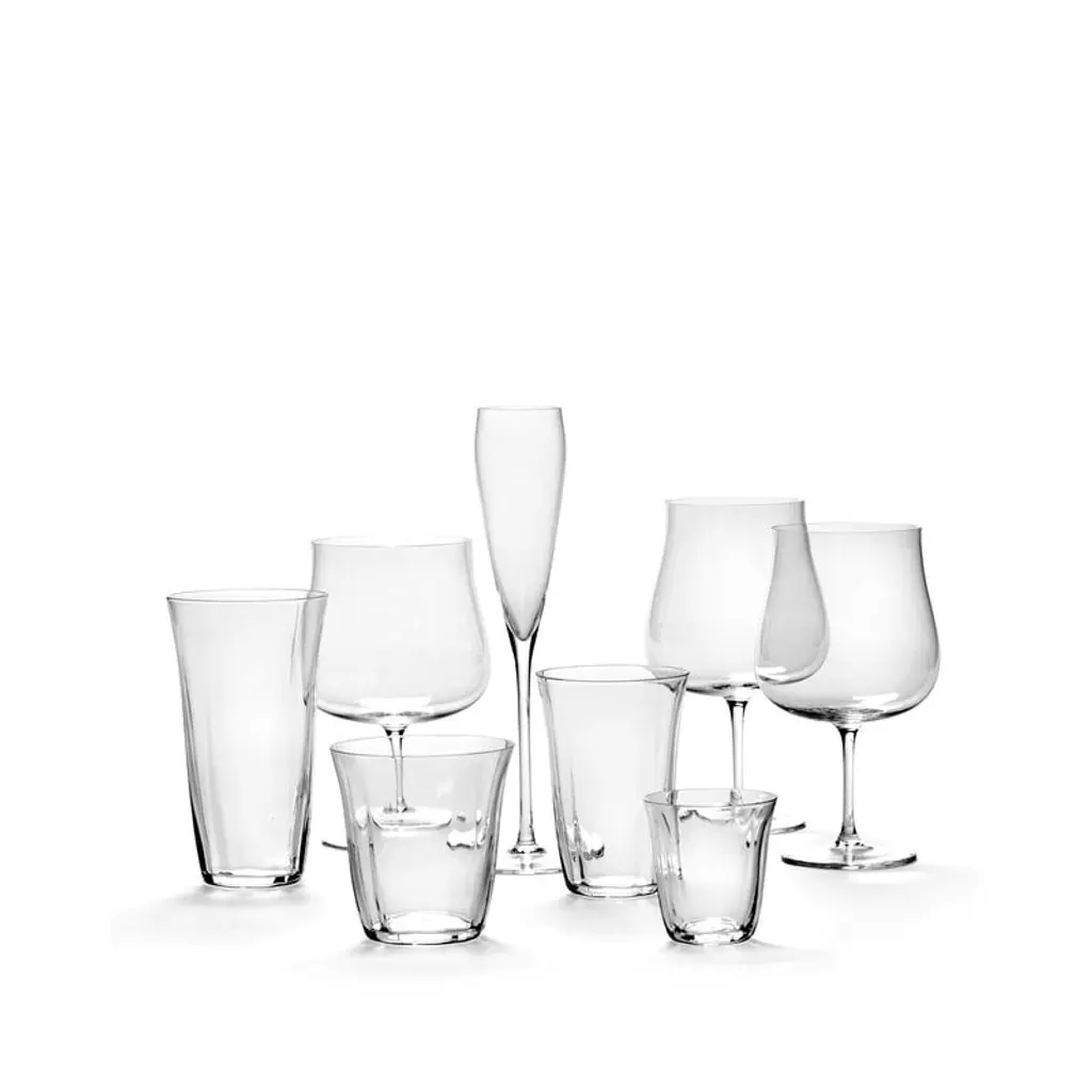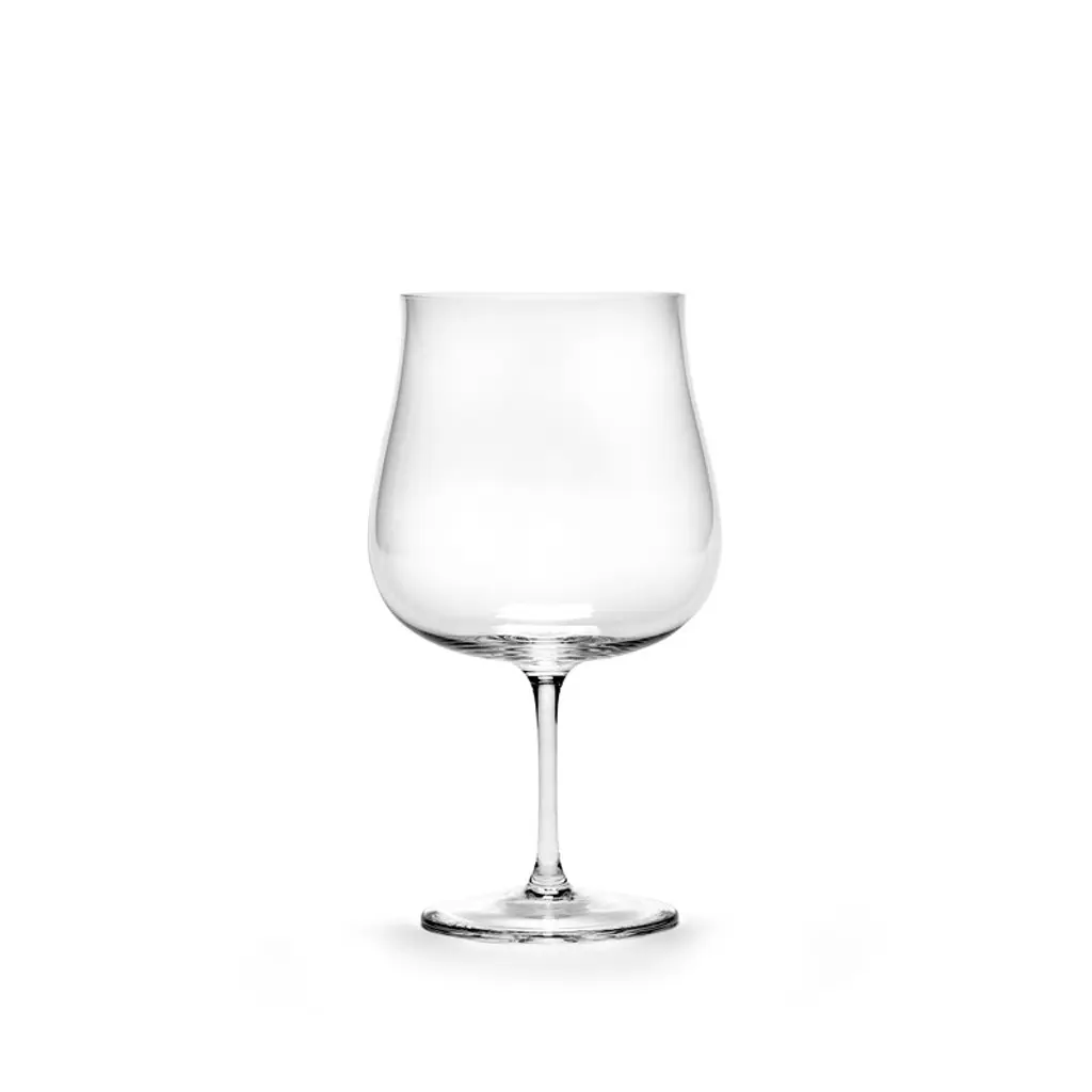 The Silhouette wine glass by Serax offers a refined setting for serving red wine, but of course, the drinking glass is as suited to any of your favorite beverages. Made from potassium glass, the red wine glass's gently curved shape is inspired by the fleeting beauty of nature: clouds, petals and ocean waves. Designed by Dutch chef Sergio Herman, the Silhouette collection charms with its graceful, minimalist silhouettes. The series returns to the essence of design: clean, elegant lines that lend structure and serenity to any setting without stealing the spotlight from the meals themselves.