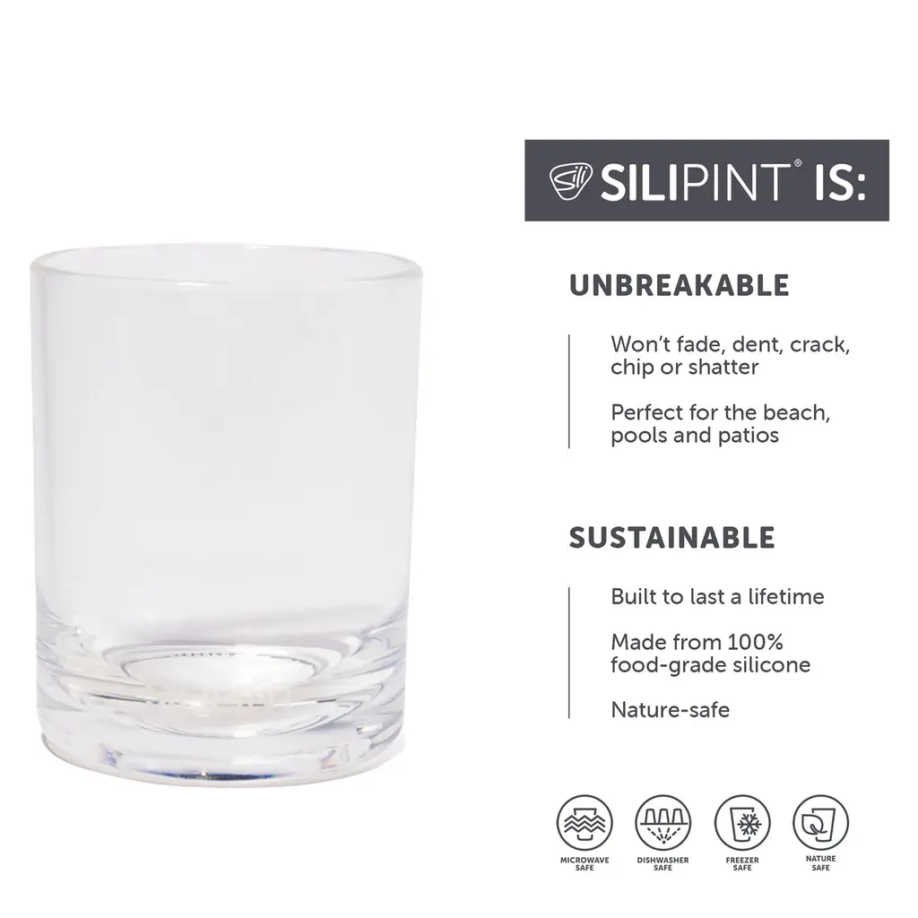 SILIPINT: ROCKS GLASSES - 12 OUNCE - Elevate your drinking experience with Silipint Rocks glasses, the epitome of style and durability. Crafted from premium, food-grade silicone, these glasses offer a unique blend of elegance and practicality. Whether you're enjoying a smooth whiskey neat or sipping on your favorite cocktail, Silipint Rocks glasses provide the perfect vessel for your drink of choice. Their sleek design mimics traditional glassware without the worry of breakage or shattering, ensuring a stress-free drinking session every time. With a sturdy, rounded out base and tapered upper walls, this cylindrical design mimics the old fashioned rocks glass but is useful for hot drinks too. Built to last, Silipint Rocks glasses are virtually unbreakable, making them ideal for both indoor and outdoor use. Say goodbye to the fear of broken glass around the pool or patio - these glasses can handle whatever you throw their way. Plus, they're dishwasher safe for easy cleanup, allowing you to spend more time enjoying your drink and less time washing up afterwards. With their sturdy construction and stylish design, Silipint Rocks glasses are a must-have addition to any home bar or kitchen. Why settle for ordinary glassware when you can elevate your drinking experience with Silipint Rocks glasses? Discover the perfect combination of style and durability today. EARTH-FRIENDLY: Silicone is made from common and very abundant materials and is completely sustainable and earth-friendly. Silicone tableware can replace plastic or paper and reduce waste. Switching to silicone cups, tumblers, bowls, and straws can help ease the strain on the earth and help you do your part to support a cleaner planet. THE ORIGINAL SILICONE DRINKWARE: Life should be fun and functional! Our products are created to mimic glass shapes we already know and love, have finishes that get a little fancy, and come in colors to suit just about any decor. Silipint offers shatterproof reusable cups, shot glasses, wine glasses, and tableware with endless uses for endless fun! OVERVIEW: 12 oz (.35 L). Top Rim 3.3", Bottom Rim 3.3", Height 4.3". 100% unbreakable food-grade silicone. Hot & cold drinks. Microwave-oven-dishwasher-freezer safe. UNBREAKABLE 12OZ ROCKS GLASSES: High-quality 12-ounce silicone rocks glasses. Polished outer surface, thick walls & a wide sturdy base. Portable for every picnic, pool party, beach outing, camping & tailgate party. They can hold hot & cold beverages. LIVELY & DURABLE: Crafted to exude style & durability, these 12 ounce wonders ensure your favorite whiskey or cocktail stays cool and vibrant. Whether it's unwinding after a long day or celebrating the weekend in style they're the perfect companion. 100% FOOD-GRADE SILICONE: Silipint products are safe and built to last! They're made of 100% food-grade silicone that is nontoxic as well as BPA, lead and plastic free. Infuse a pop of color and enjoyment into your relaxation time. HIGH QUALITY: Each reusable cup is dishwasher & microwave safe, freezer-friendly & can be used for hot or cold drinks. Our products will not break, crack, chip, dent, fade, or scratch. Easy-to-grip outer surfaces and nonslip bottoms for extra safety. EARTH-FRIENDLY: Endlessly-reusable! Silicone is sustainable, so by purchasing our products, you'll do your part to help reduce plastic and paper in the waste stream and oceans. Partner with us to create a waste-free lifestyle!
