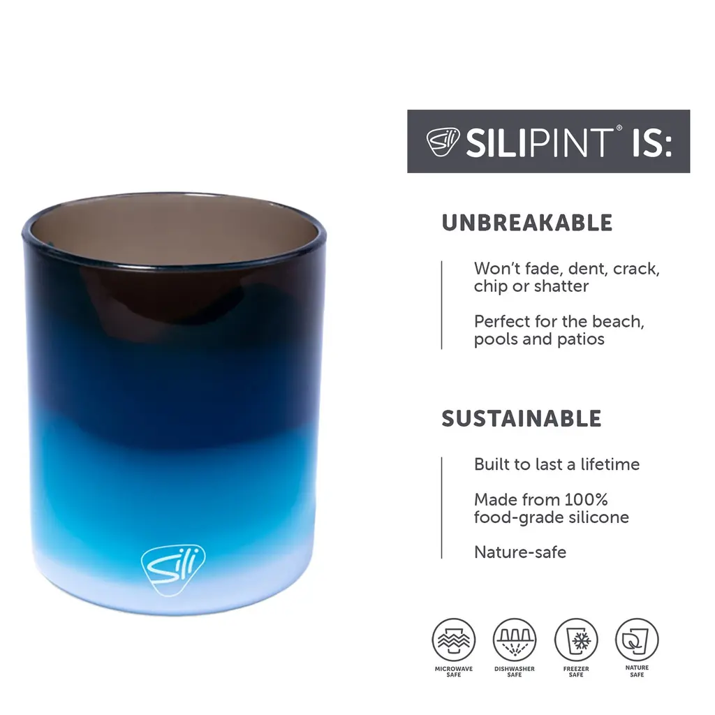 SILIPINT: ROCKS GLASSES - 12 OUNCE - Elevate your drinking experience with Silipint Rocks glasses, the epitome of style and durability. Crafted from premium, food-grade silicone, these glasses offer a unique blend of elegance and practicality. Whether you're enjoying a smooth whiskey neat or sipping on your favorite cocktail, Silipint Rocks glasses provide the perfect vessel for your drink of choice. Their sleek design mimics traditional glassware without the worry of breakage or shattering, ensuring a stress-free drinking session every time. With a sturdy, rounded out base and tapered upper walls, this cylindrical design mimics the old fashioned rocks glass but is useful for hot drinks too. Built to last, Silipint Rocks glasses are virtually unbreakable, making them ideal for both indoor and outdoor use. Say goodbye to the fear of broken glass around the pool or patio - these glasses can handle whatever you throw their way. Plus, they're dishwasher safe for easy cleanup, allowing you to spend more time enjoying your drink and less time washing up afterwards. With their sturdy construction and stylish design, Silipint Rocks glasses are a must-have addition to any home bar or kitchen. Why settle for ordinary glassware when you can elevate your drinking experience with Silipint Rocks glasses? Discover the perfect combination of style and durability today. EARTH-FRIENDLY: Silicone is made from common and very abundant materials and is completely sustainable and earth-friendly. Silicone tableware can replace plastic or paper and reduce waste. Switching to silicone cups, tumblers, bowls, and straws can help ease the strain on the earth and help you do your part to support a cleaner planet. THE ORIGINAL SILICONE DRINKWARE: Life should be fun and functional! Our products are created to mimic glass shapes we already know and love, have finishes that get a little fancy, and come in colors to suit just about any decor. Silipint offers shatterproof reusable cups, shot glasses, wine glasses, and tableware with endless uses for endless fun! OVERVIEW: 12 oz (.35 L). Top Rim 3.3", Bottom Rim 3.3", Height 4.3". 100% unbreakable food-grade silicone. Hot & cold drinks. Microwave-oven-dishwasher-freezer safe. UNBREAKABLE 12OZ ROCKS GLASSES: High-quality 12-ounce silicone rocks glasses. Polished outer surface, thick walls & a wide sturdy base. Portable for every picnic, pool party, beach outing, camping & tailgate party. They can hold hot & cold beverages. LIVELY & DURABLE: Crafted to exude style & durability, these 12 ounce wonders ensure your favorite whiskey or cocktail stays cool and vibrant. Whether it's unwinding after a long day or celebrating the weekend in style they're the perfect companion. 100% FOOD-GRADE SILICONE: Silipint products are safe and built to last! They're made of 100% food-grade silicone that is nontoxic as well as BPA, lead and plastic free. Infuse a pop of color and enjoyment into your relaxation time. HIGH QUALITY: Each reusable cup is dishwasher & microwave safe, freezer-friendly & can be used for hot or cold drinks. Our products will not break, crack, chip, dent, fade, or scratch. Easy-to-grip outer surfaces and nonslip bottoms for extra safety. EARTH-FRIENDLY: Endlessly-reusable! Silicone is sustainable, so by purchasing our products, you'll do your part to help reduce plastic and paper in the waste stream and oceans. Partner with us to create a waste-free lifestyle!