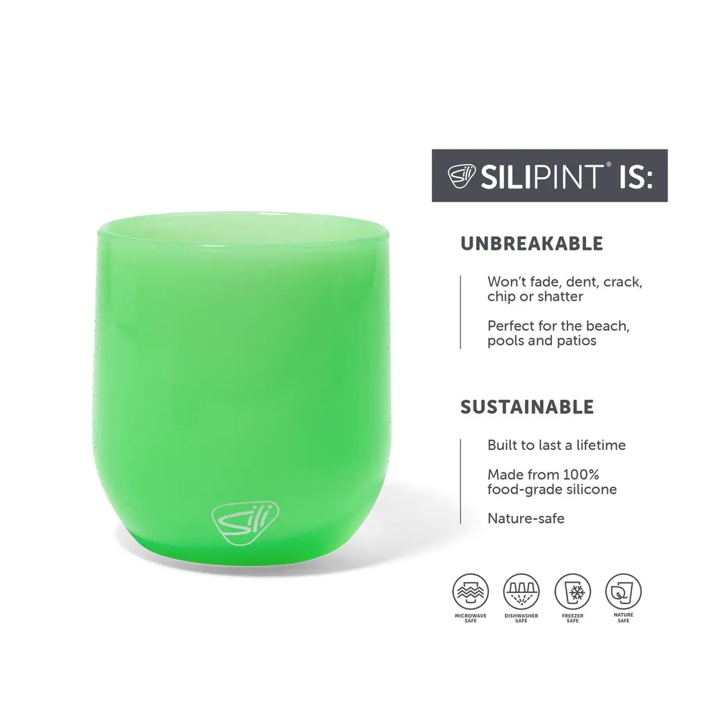 SILIPINT SILICONE STEMLESS WINE GLASSES - 12 OUNCE - Stock your indoor & outdoor bar for carefree entertaining with our new and improved, unbreakable 12 ounce stemless silicone wine glasses. Redesigned to be more sturdy, this wine glass gives a more confident hold. With a polished outer surface, thicker wall and sturdier base, you'll know a patented Silipint when you experience the difference. Forget about disastrous broken glass, dented stainless and crappy plastic. Bring these on every camping trip, park picnic, pool party, beach bonfire and tailgate in between. Lightweight, odorless, and safe in the dishwasher or when bouncing around in the bottom of a sink. Silipints are safe for the microwave, dishwasher, freezer & more. They can hold hot & cold beverages, they're durable, eco-friendly and will never wear out. Avoid spills with the insane no-slip base. Silipints will not break, crack, chip, dent, fade or scratch. Silipints are safe & built to last, made of 100% food-grade, silicone that is nontoxic and BPA, lead and plastic FREE. EARTH-FRIENDLY: Silicone is made from common and very abundant materials and is completely sustainable and earth-friendly. Silicone tableware can replace plastic or paper and reduce waste. Switching to silicone cups, tumblers, bowls, and straws can help ease the strain on the earth and help you do your part to support a cleaner planet. THE ORIGINAL SILICONE DRINKWARE: Life should be fun and functional! Our products are created to mimic glass shapes we already know and love, have finishes that get a little fancy, and come in colors to suit just about any decor. Silipint offers shatterproof reusable cups, shot glasses, wine glasses, and tableware with endless uses for endless fun! UNBREAKABLE WINE GLASSES: High-quality 12-ounce stemless silicone glasses. Polished outer surface, thick walls, & a wide, sturdy base. Portable - For every picnic, pool party, beach outing, camping & tailgate party. FUN & DURABLE: Bright, colorful stemless glasses are the perfect way to add some flair to your downtime! Designed to be a stylish, fun way to keep your wine or cocktail cold as you relax after work or party on the weekend. 100% FOOD-GRADE SILICONE: Silipint products are safe and built to last! They're made of 100% food-grade silicone that is nontoxic and BPA, lead and plastic free. HIGH QUALITY: Each reusable cup is dishwasher-safe, freezer-friendly, and microwave-safe. Our products will not break, crack, chip, dent, fade, or scratch. Easy-to-grip outer surfaces and nonslip bottoms for extra safety. EARTH-FRIENDLY: Silicone is sustainable, so by purchasing our products, you'll do your part to help reduce plastic and paper in the waste stream and oceans. Partner with us to create a waste-free lifestyle!