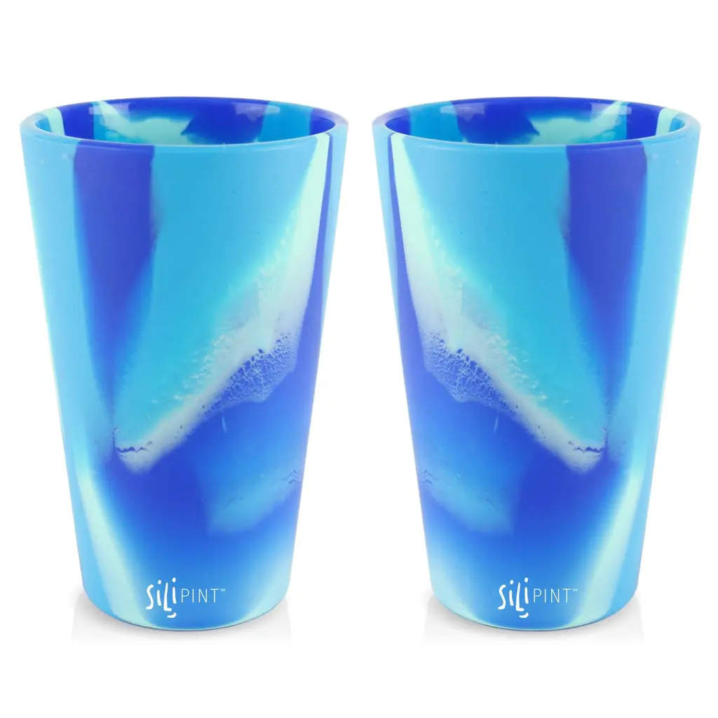 Silipint: Silicone Pint Glasses: 2 Pack Arctic Sky - 16oz Unbreakable Cups, Flexible, Hot/cold, Reusable, Easy Grip - Multi
