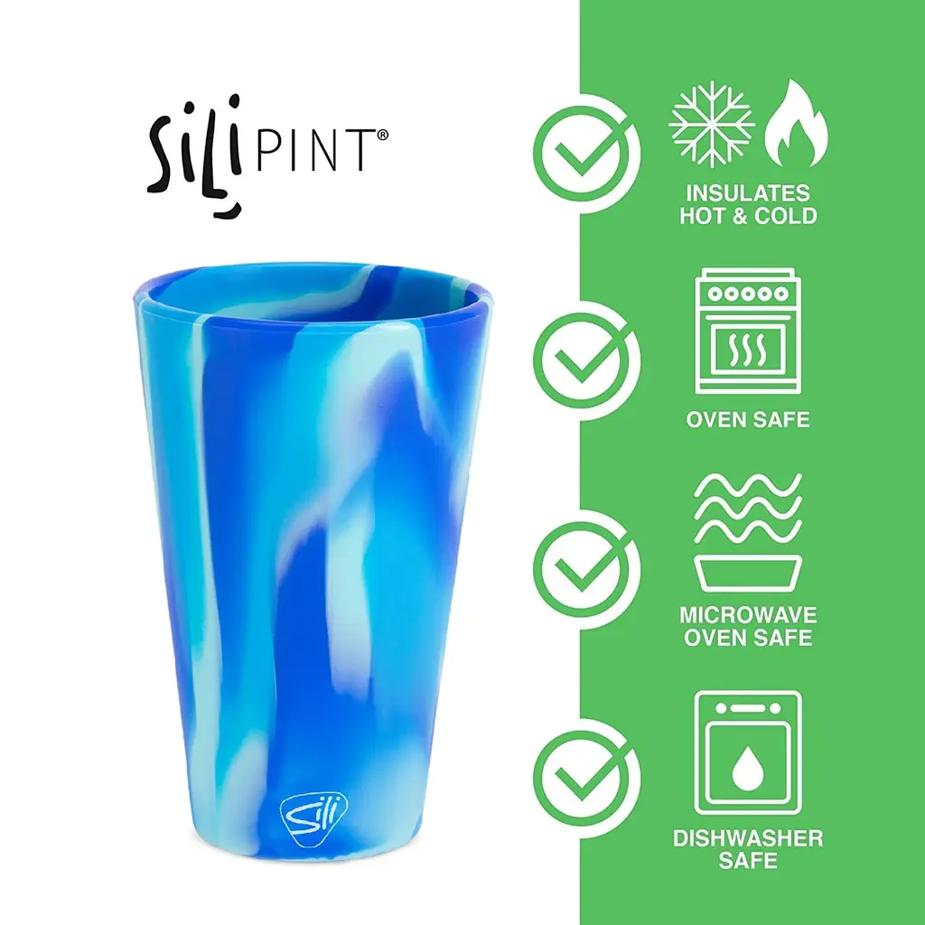 For thirsty folks across the land, 16 ounce silicone pints are more than a rugged alternative to the beer glass. From the patio to the campground, beach vacation or daily commute, these colorful, versatile drinking glasses are as flexible in shape as they are in utility. Our true American pint sized silicone cups have thick and sturdy, yet squeezable, walls that are not too squishy, and offer a grippy outer surface for extra safety. Silipints are safe for the microwave, dishwasher, freezer & more. They can hold hot & cold beverages while always safe to the touch while being durable, eco-friendly and will never wear out. Avoid spills with the insane no-slip base, however, if spills do happen, Silipints will not break, crack, chip, dent, fade or scratch. Silipints are safe & built to last, made of 100% food-grade, platinum-cured silicone that is free of chemicals. Silicone is made from materials that exist in abundance - the same materials that make up a huge percentage of the earth's crust. Silipints are made of 100% food-grade, FDA approved, platinum-cured silicone that is free of BPA, BPS and phthalates. We stand behind our products with a limited lifetime warranty against defectives. EARTH-FRIENDLY: Silicone is made from common and very abundant materials and is completely sustainable and earth-friendly. Silicone tableware can replace plastic or paper and reduce waste. Switching to silicone cups, tumblers, bowls, and straws can help ease the strain on the earth and help you do your part to support a cleaner planet. THE ORIGINAL SILICONE TABLEWARE: Life should be fun and functional! Our products are created to mimic glass shapes we already know and love, have finishes that get a little fancy, and come in colors to suit just about any decor. Silipint offers shatterproof reusable cups, shot glasses, wine glasses, and tableware with endless uses for endless fun! SILICONE PINT GLASSES: Our 16-ounce silicone pints are a rugged yet lightweight alternative to ordinary water drinking cups & beer glasses. These unbreakable drinking glasses are as flexible in shape as they are in utility. REUSABLE: For thirsty folk, our pint-sized silicone cups are portable enough to use while camping or performing other outdoor activities, and they also make perfect travel cups for your daily commute. FUN & VERSATILE: We design each portable cup to be a stylish, fun way to keep your water, coffee, or iced tea with you as you go about your day & your beer or cocktail nice & cold as you relax after work or on the weekend. 100% SAFE FOOD-GRADE SILICONE: Silipint products are safe and built to last! They're made of 100% food-grade, platinum-cured silicone that is free of BPS, odors, and phthalates. Lightweight & ultra-durable. HIGH QUALITY: Each reusable pint glass is dishwasher-safe, freezer-friendly & microwave-safe. Our products will not break, crack, chip, dent, fade, or scratch. Easy-to-grip outer surfaces & nonslip bottoms for extra safety.