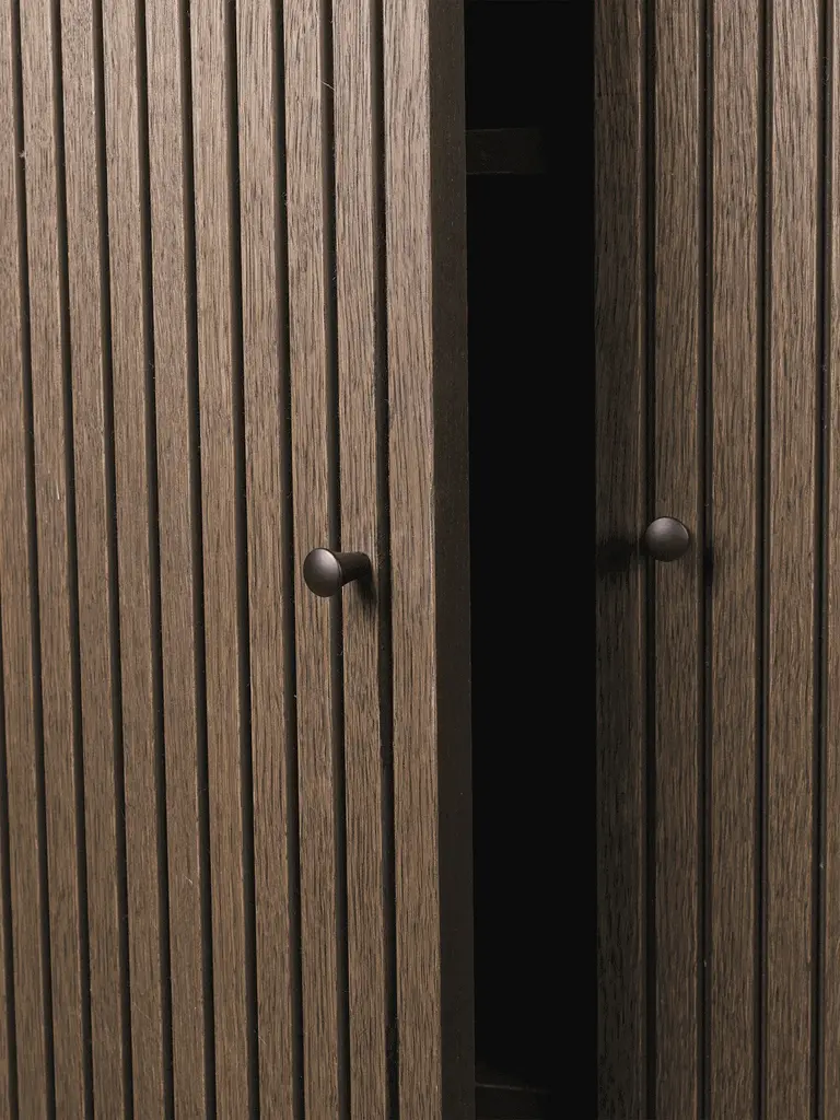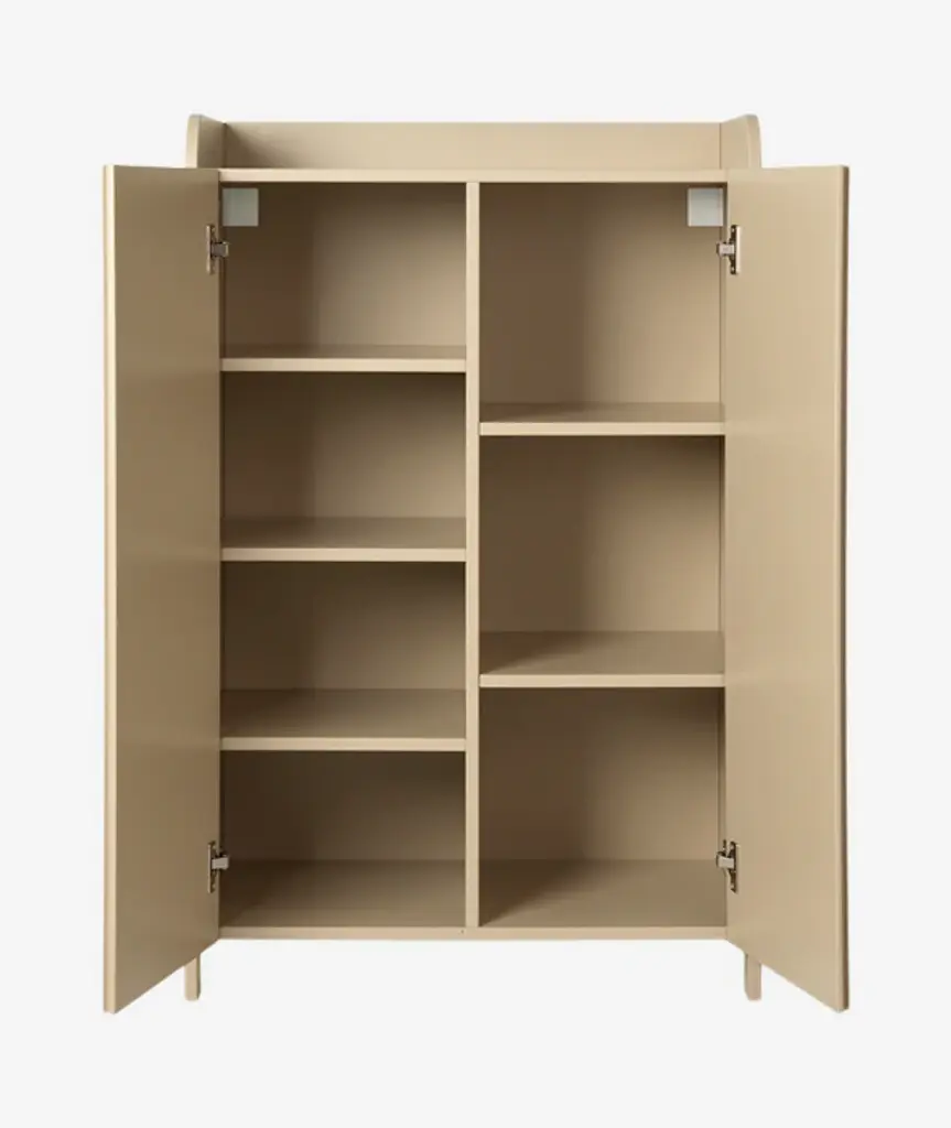 The Sill Cupboard offers a lean and slim storage solution. The name Sill stems from the French sillon, meaning carved grooves, which adorn the doors of the Sill Cupboard. This versatile and functional piece can be used throughout your home – in the kid’s room, the hallway, the bedroom or in the kitchen. The top of the cupboard features raised edges alongside three sides, giving you an extra surface for additional storage or as a display for favourite items. In addition to the scalloped doors, rounded corners contribute to the playful expression that is distinctive to Sill’s design. Use the tall cupboard in the kid’s room, the hallway, the bedroom or for office storage – the shelves inside are tall enough to fit notebooks and ring binders.