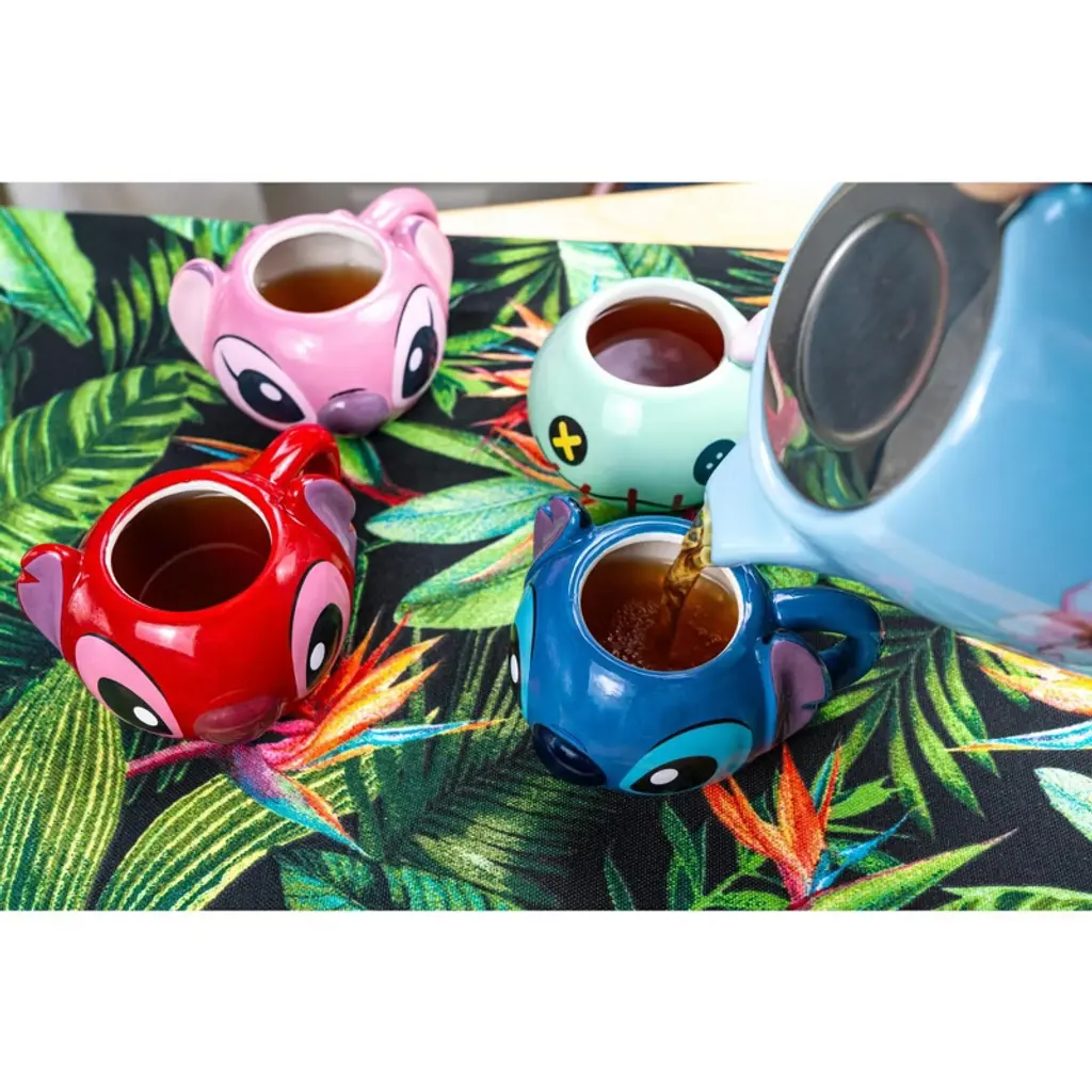 Add a playful touch of aloha to your drinkware collection with the Disney Lilo & Stitch 4 Piece Sculpted Ceramic Mini Mug Set! This charming set features the faces of Stitch, Angel, Scrump, and Leroy, each beautifully sculpted to capture the unique personality of these beloved characters. It’s a must-have for any fan of Disney's Lilo & Stitch and their mischievous adventures. Perfectly sized for espresso shots, small servings of tea, or hot cocoa, these mini mugs are as functional as they are adorable. Whether you’re starting your morning with a touch of Stitch's spirited energy or winding down with Angel’s sweet charm, these mugs make every sip more enjoyable. Crafted from high-quality ceramic, each mug is sturdy and durable, designed to stand up to everyday use. They’re also ideal for displaying on a shelf or desk as collectible pieces, bringing a bit of Hawaiian magic to your decor.