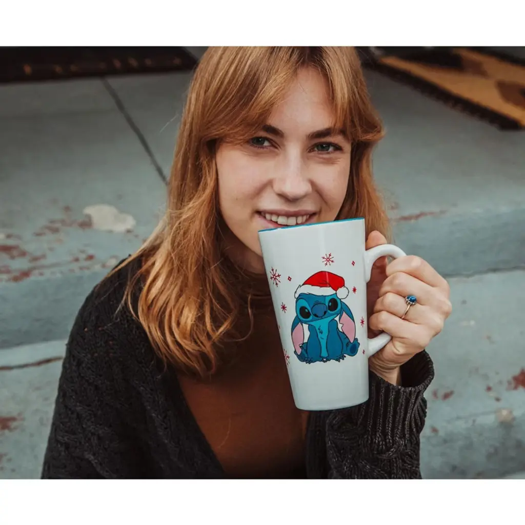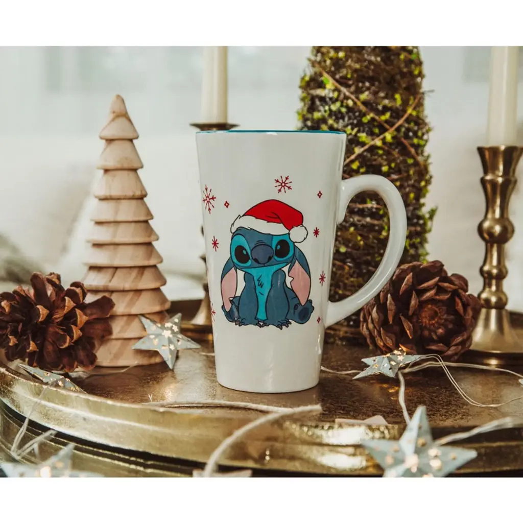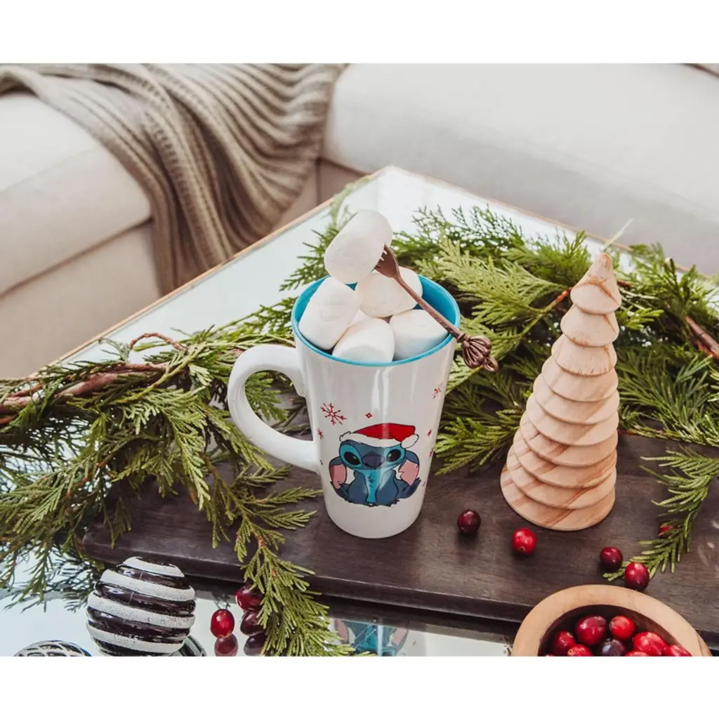 Silver Buffalo Disney Lilo & Stitch Santa Hat Ceramic Latte Mug | Holds 16 Ounces