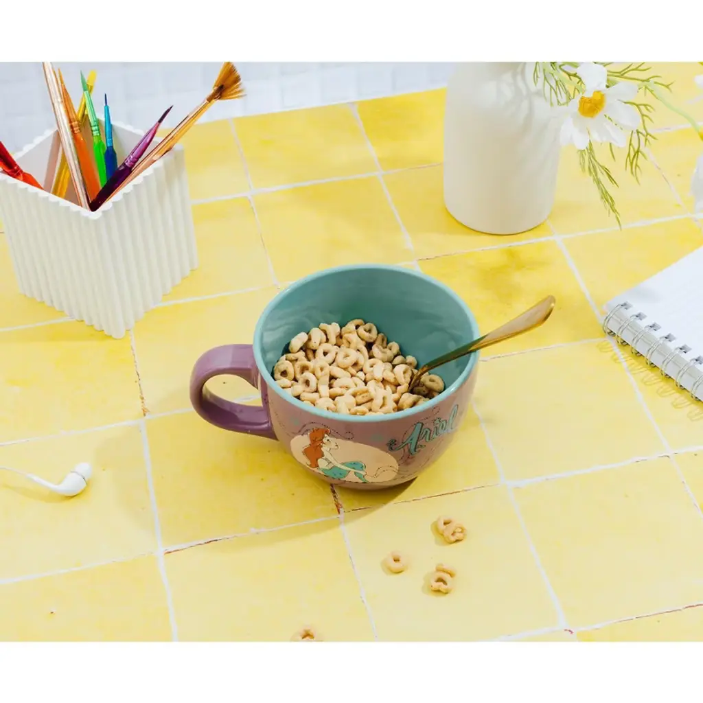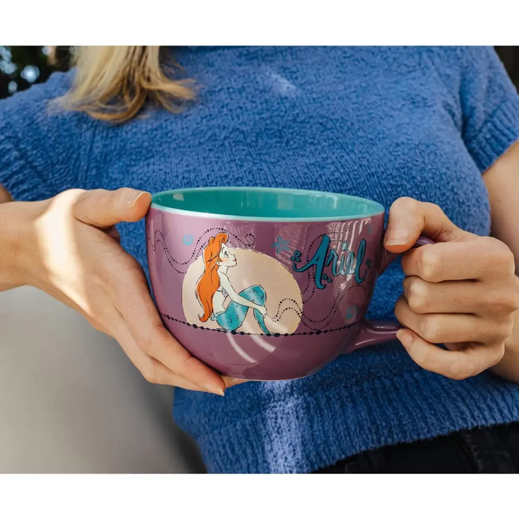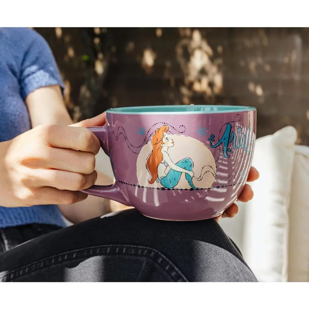 Let your imagination drift to moonlit shores and undersea adventures with this Disney The Little Mermaid Ariel soup mug. Featuring a serene and dreamy illustration of Ariel gazing longingly under a moonlit sky, this beautifully designed purple ceramic mug captures the heart of Disney magic and the spirit of a princess who dares to dream of more. With its generous approximately 24-ounce capacity, it’s perfect for cozy meals, warm drinks, or quiet evenings lost in your own world, just like Ariel.