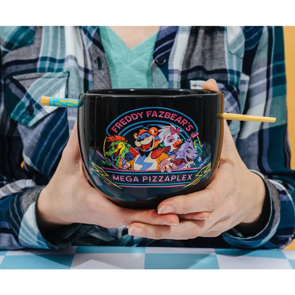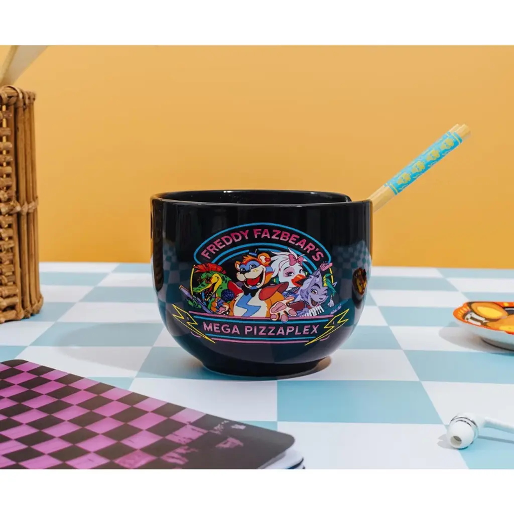 Silver Buffalo Five Nights At Freddy's Mega Pizzaplex 20-ounce Ramen Bowl And Chopstick Set
