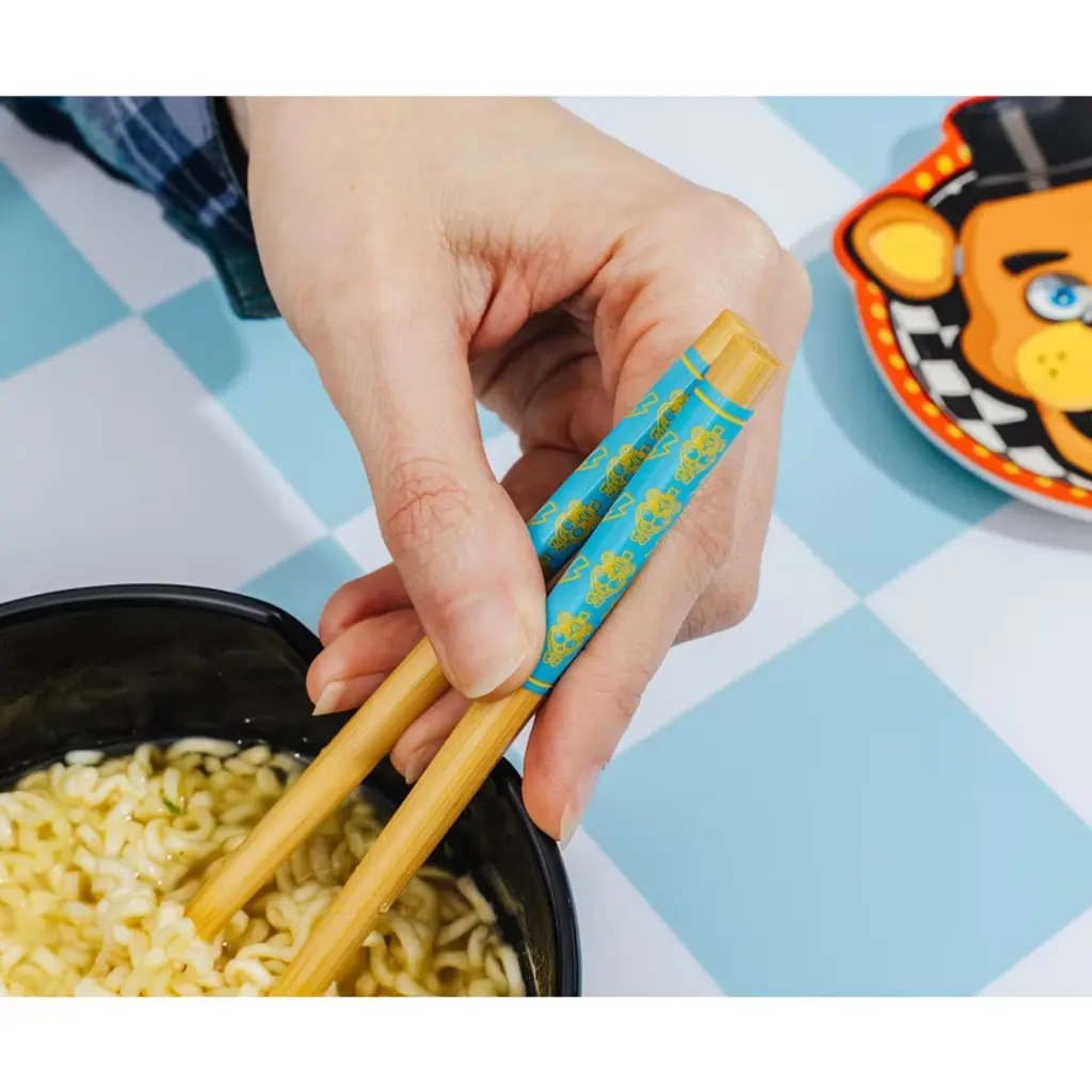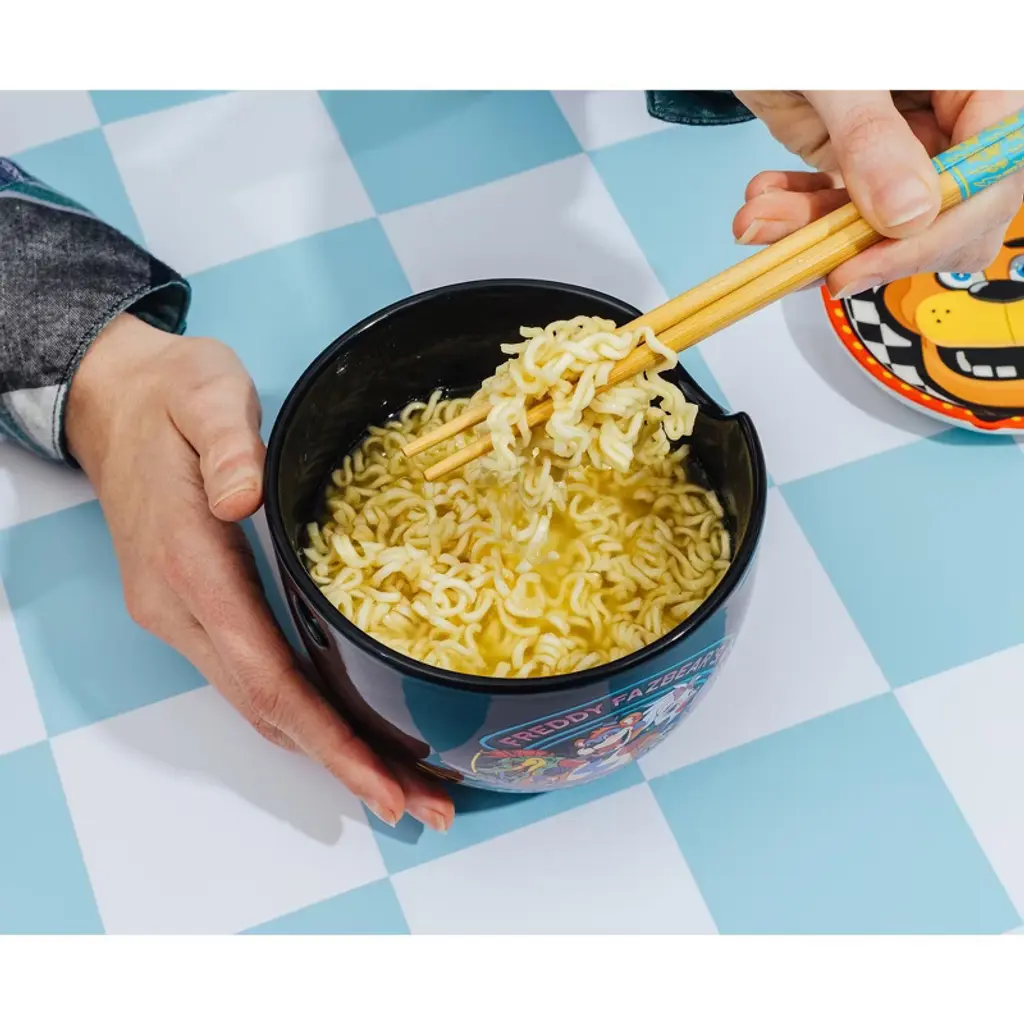 Enjoy your favorite soup or noodles in style with this fun Five Nights at Freddy's character ramen bowl set! Fun and functional, this ramen bowl set is great for using around the house, at parties, and more! Officially licensed. Produced by Silver Buffalo, a trendsetting housewares and home decor company based in the heart of New York City.