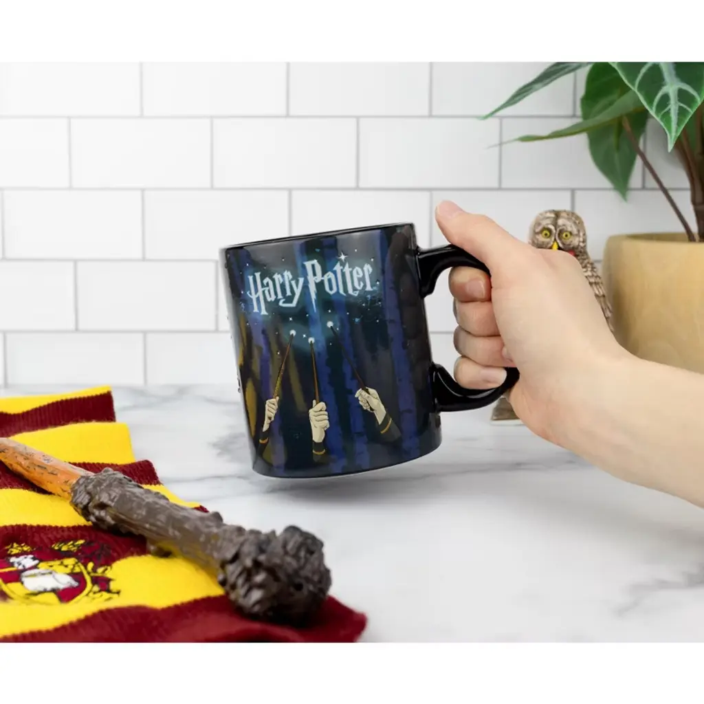 Enjoy your favorite beverage in style with this fun Harry Potter heat reveal mug! Fun and functional, this mug is great for using around the house, at the office, parties, and more! Officially licensed. Produced by Silver Buffalo, a trendsetting housewares and home decor company based in the heart of New York City. A Toynk exclusive!