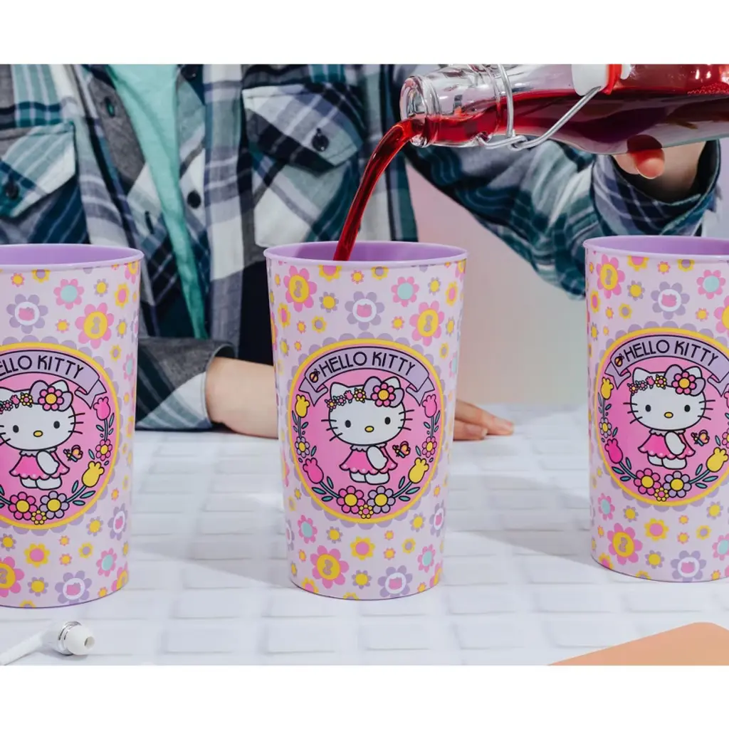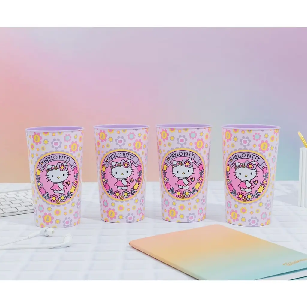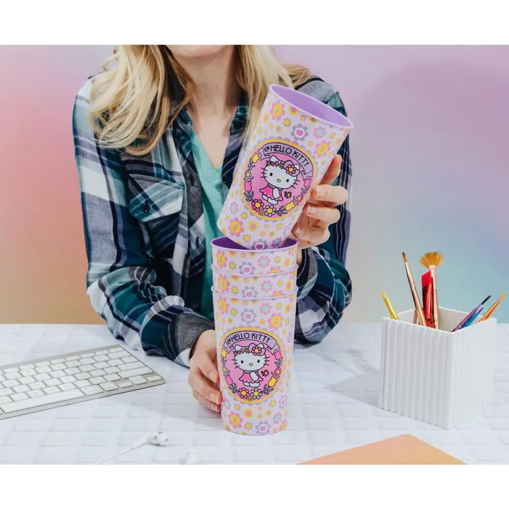 Silver Buffalo Sanrio Hello Kitty Flowers 4-piece Plastic Cup Set | Each Holds 22 Ounces