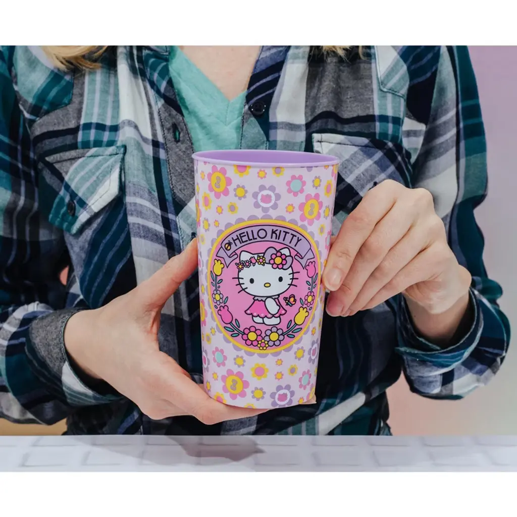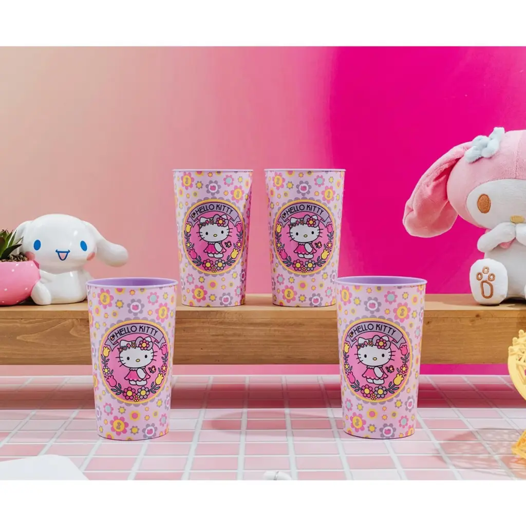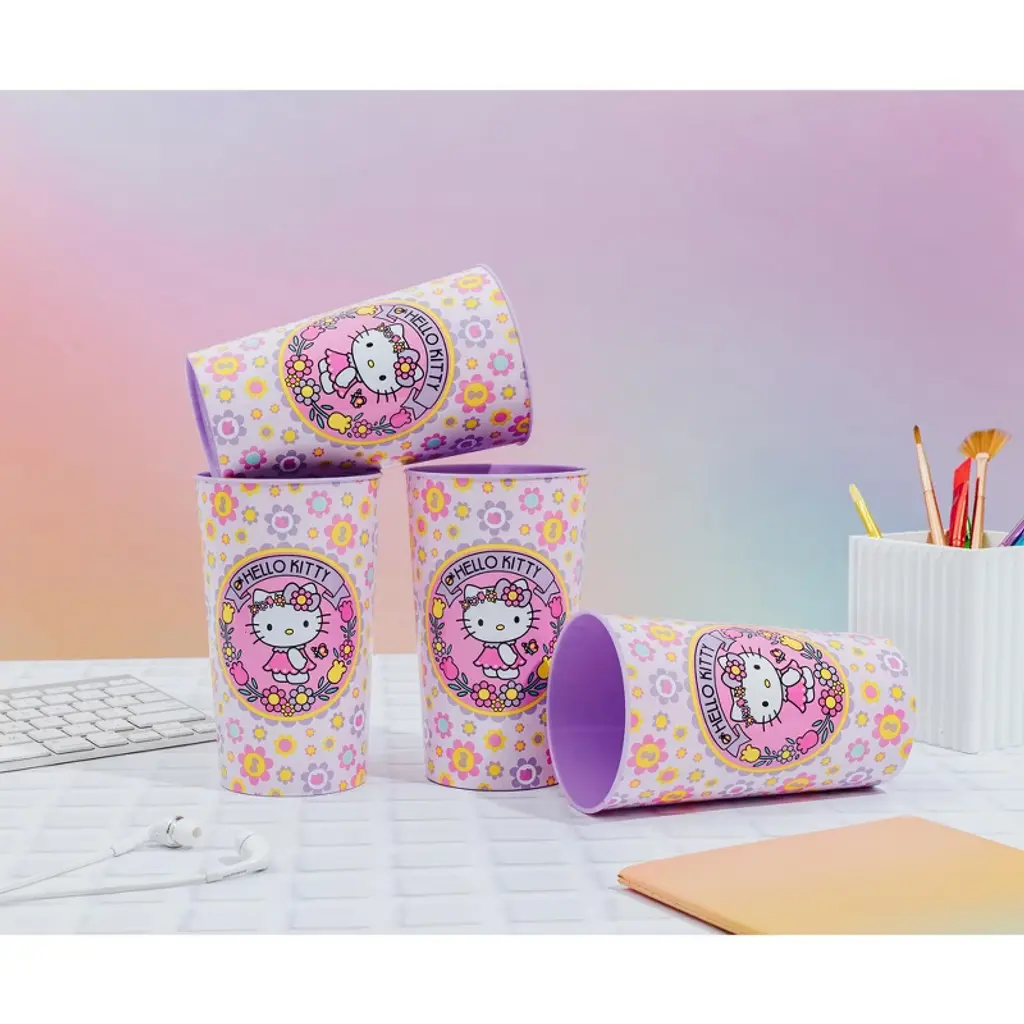 Silver Buffalo Sanrio Hello Kitty Flowers 4-piece Plastic Cup Set | Each Holds 22 Ounces