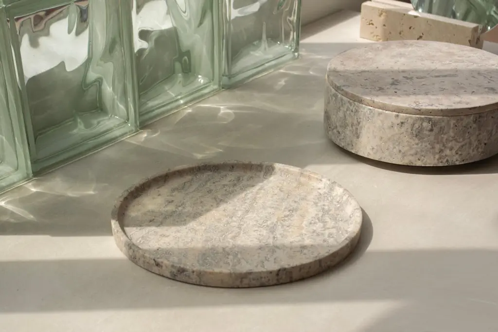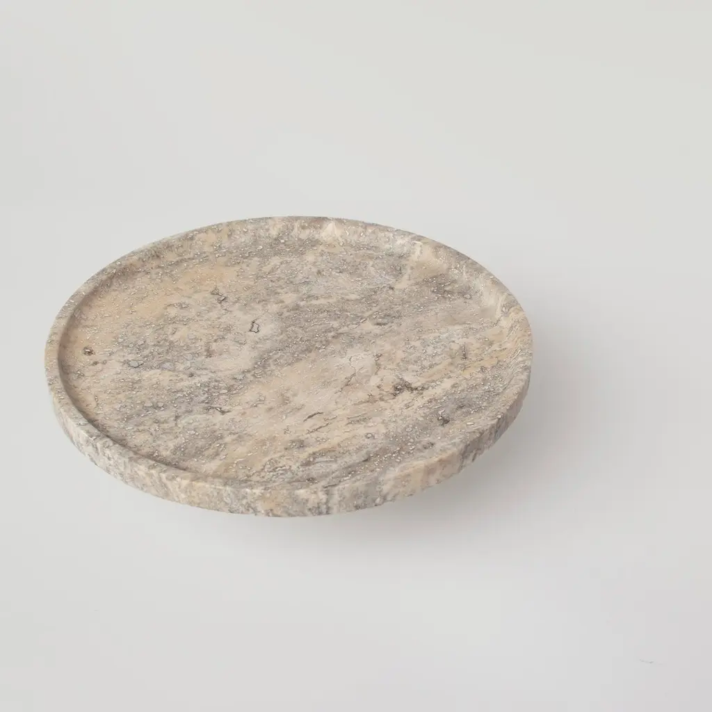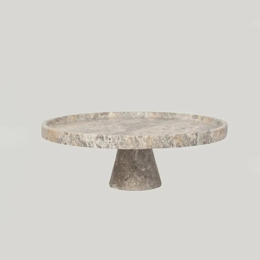 Put your delectable desserts on a pedestal with this gorgeous travertine cake stand from Kiwano. Hand crafted by Turkish artisans, this stylish display will ensure your baking skills never go unnoticed. Glass dome not included. We recommend to put a glass dome of 25 cm. There may be natural variations that are not product flaws, they make your design truly one-of-a-kind. Overall dimensions: W: 28 cm D: 28 cm H: 10 cmMaterial: marbleCare: do not use any acid, clean with a gentle cloth and soap.